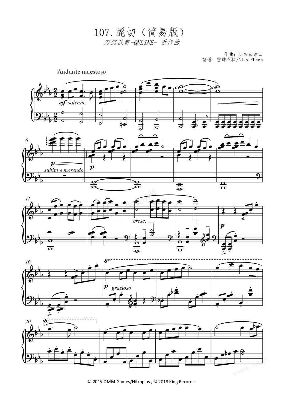 钢琴谱:髭切 近侍曲 【刀剑乱舞】(简易版)