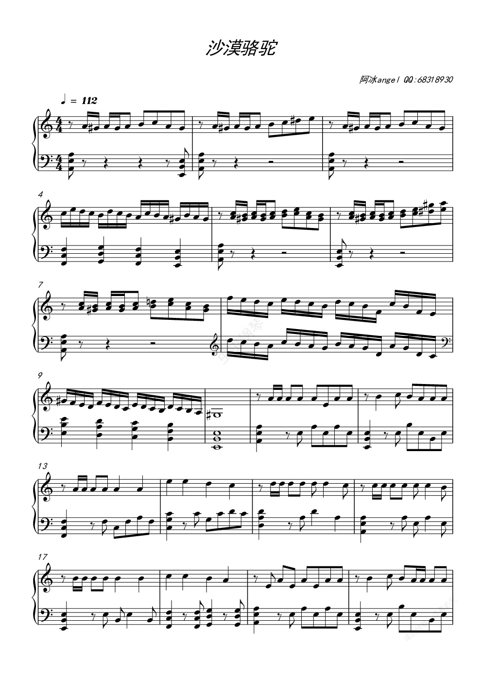 钢琴谱:沙漠骆驼
