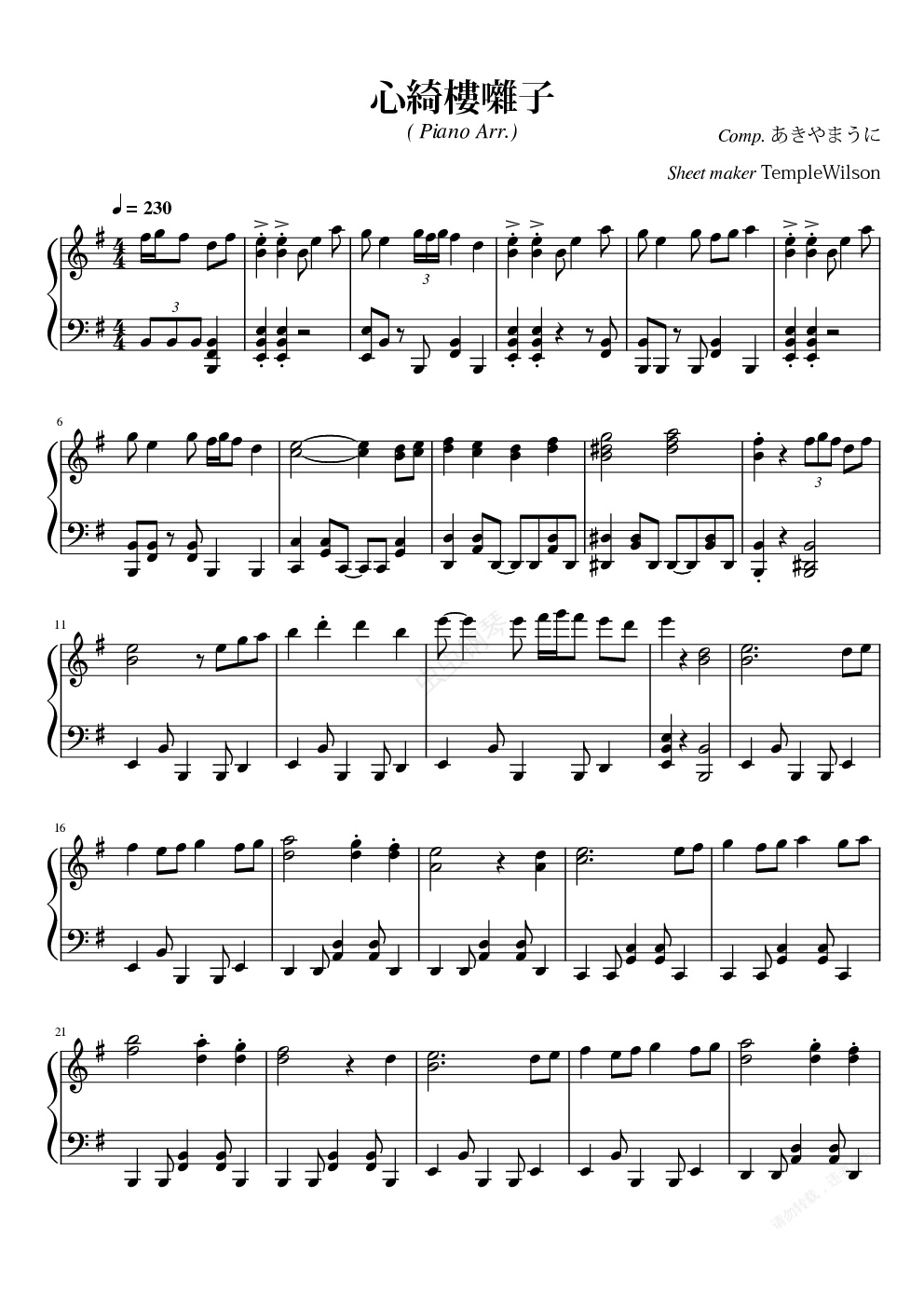 钢琴谱:【东方心绮楼】心綺樓囃子