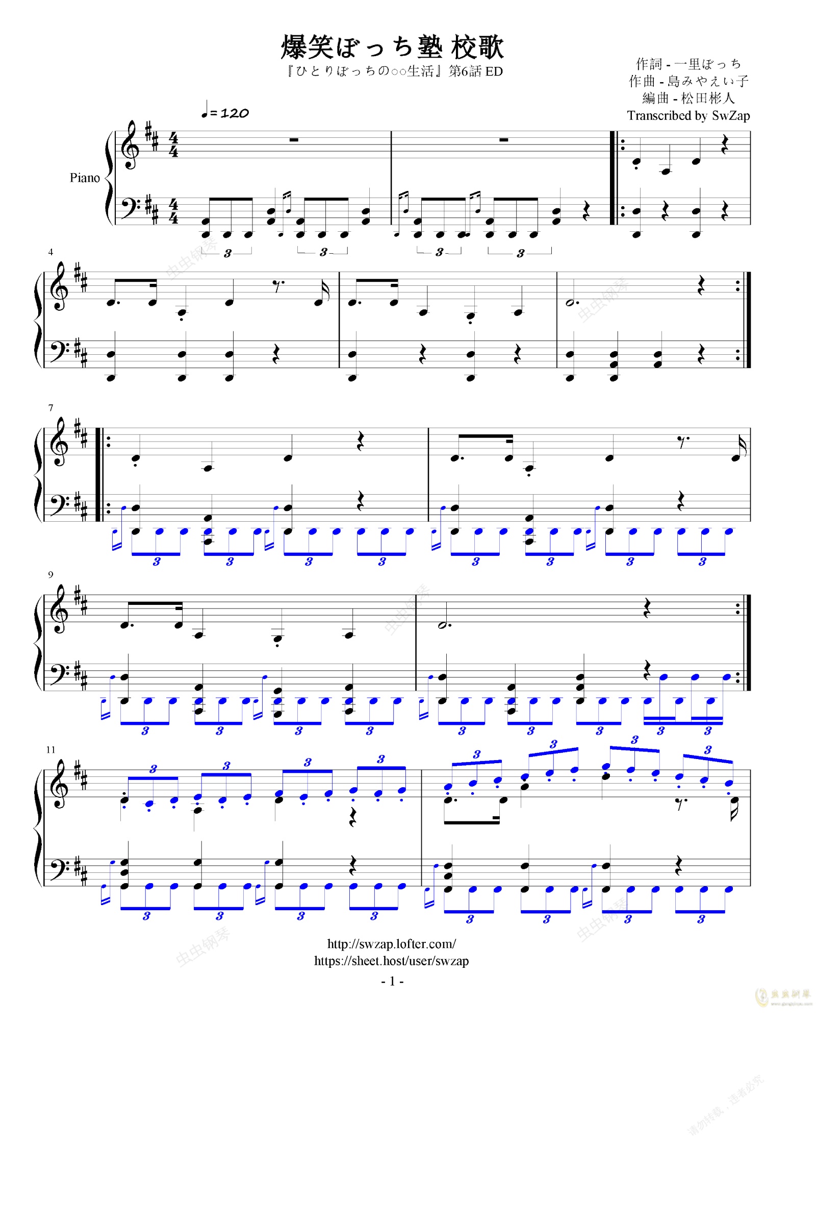 钢琴谱:爆笑波知塾校歌(爆笑ぼっち塾 校歌)