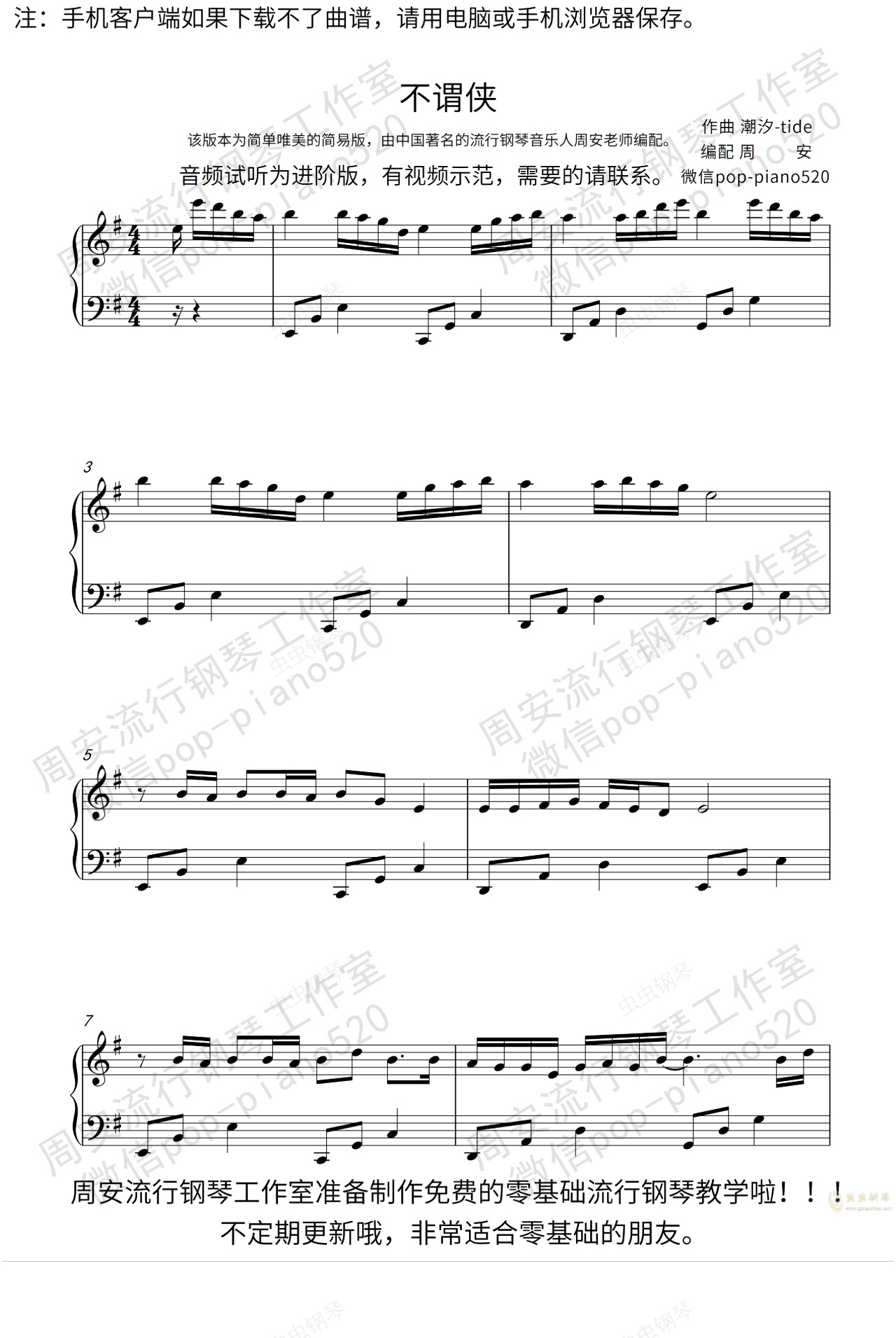 钢琴谱:《不谓侠》唯美钢琴版(周安老师)