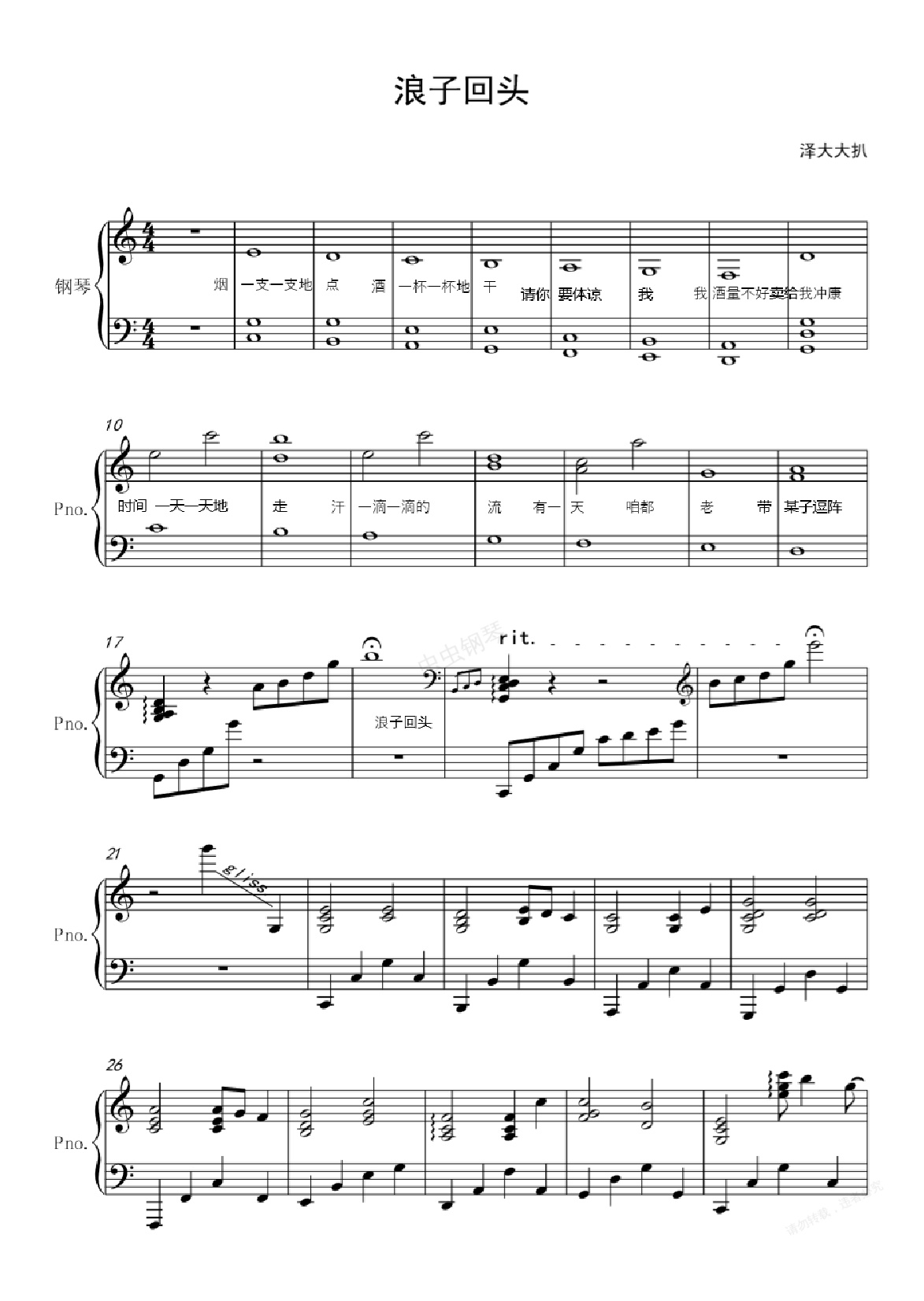 钢琴谱:浪子回头(完美伴奏带歌词)