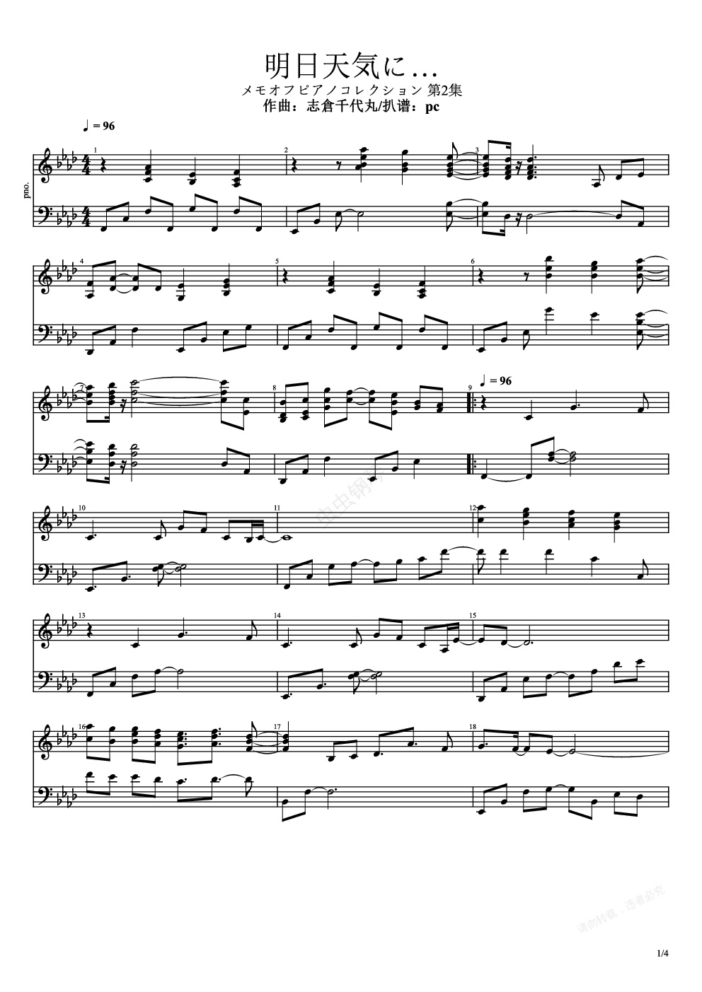 (备注:谱子括号里的音在反复第二遍的时候弹)演奏视频:/video//千代丸社长天·下·第·一!《メモオフピアノコレクション 第2集》这个MO专辑的坑现已全部填完(已上传第1集角色曲官方谱),部分谱子后来发现有问题修改过,虫钢不方便修改谱面,强烈建议去网盘下载最新谱面,下载地址:/s/1rQ谱子如发现有任何问题欢迎指出。此处插入一则广告:/过气UP主,不定期更新MO相关演奏,有兴趣的同好欢迎关注一波,多谢支持![IMG]/pu/2019/11/7/__4949__[/IMG]