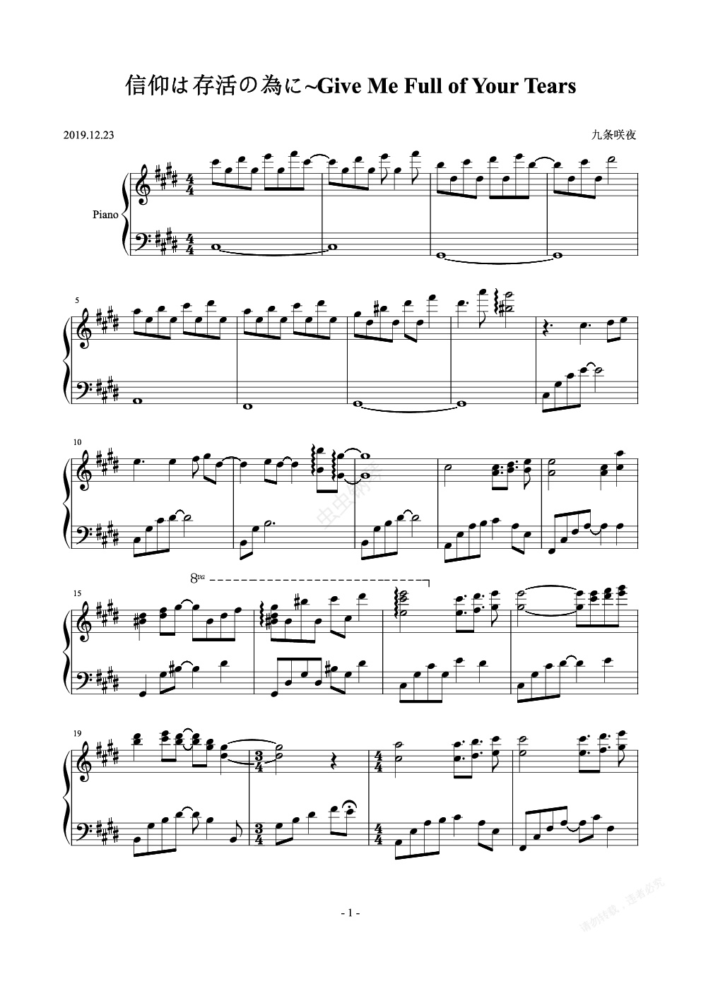 钢琴谱:信仰は存活の為に ~ Give Me Full of Your Tears