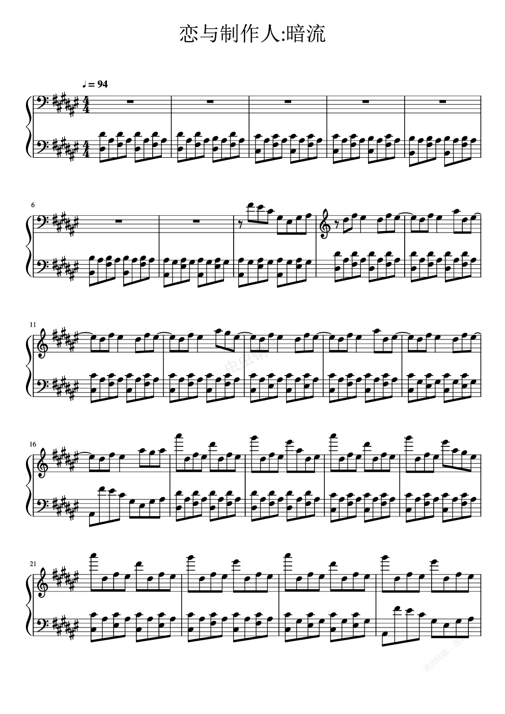 钢琴谱:恋与制作人——暗流+Comptine d'un autre été