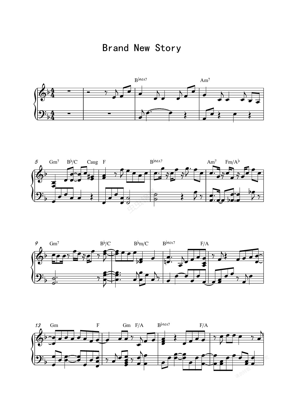 钢琴谱:Brand New Story