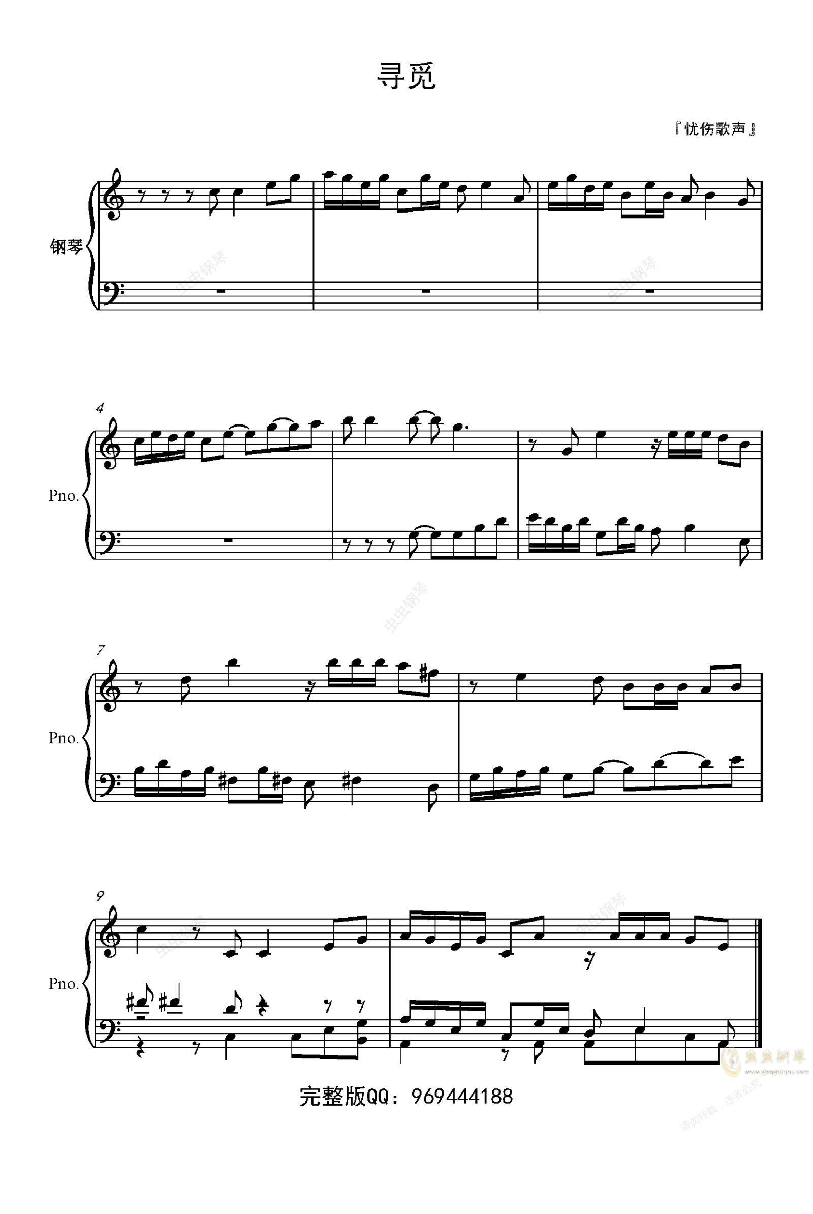 钢琴谱:【葫芦娃】寻觅(四手)——『忧伤歌声』