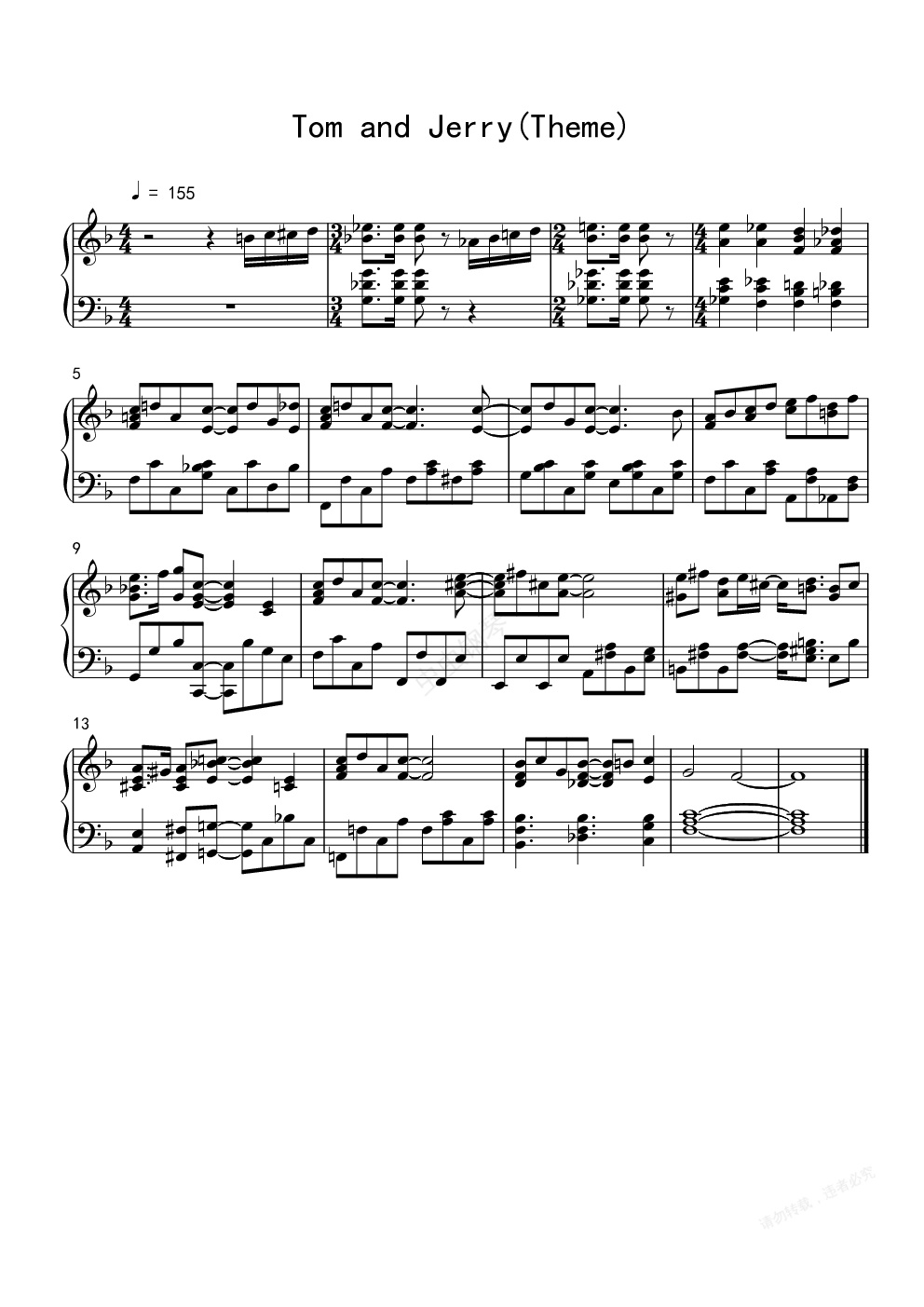 钢琴谱:猫和老鼠(钢琴)(忠实原版主题曲)