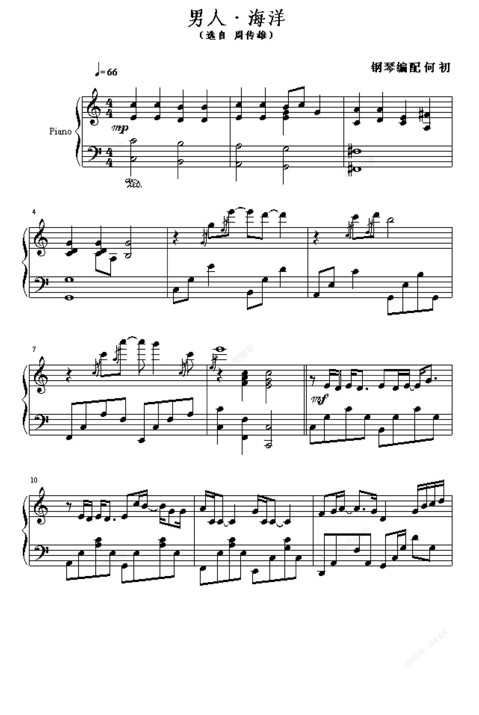 钢琴谱:男人海洋