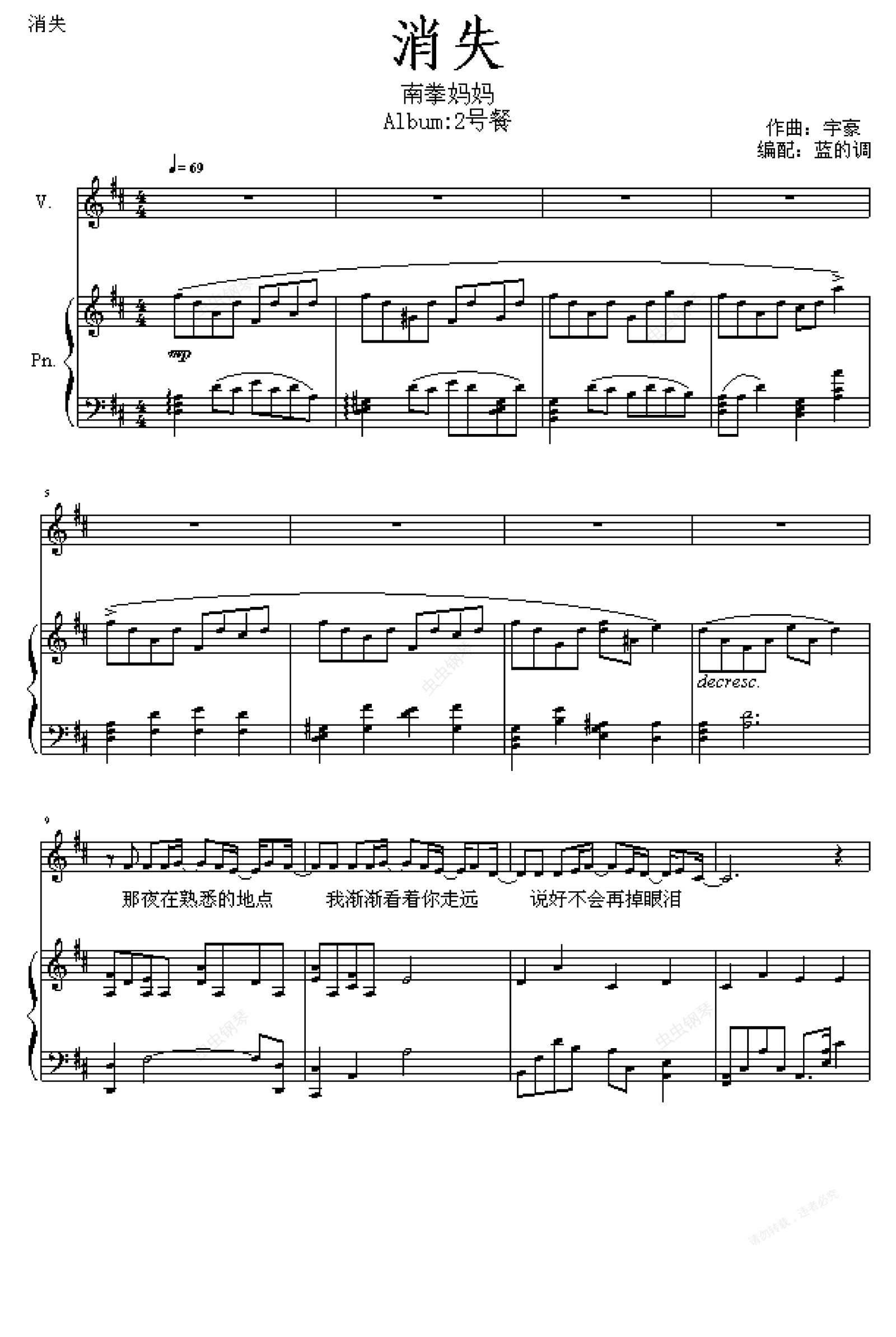 明天就开学了, 上初三可能就没时间再扒谱了, 把这首《消失》作为暑假的告别曲吧: 转载于流行钢琴网论坛,原贴地址为: /dvbbs/?=104&ID=45763