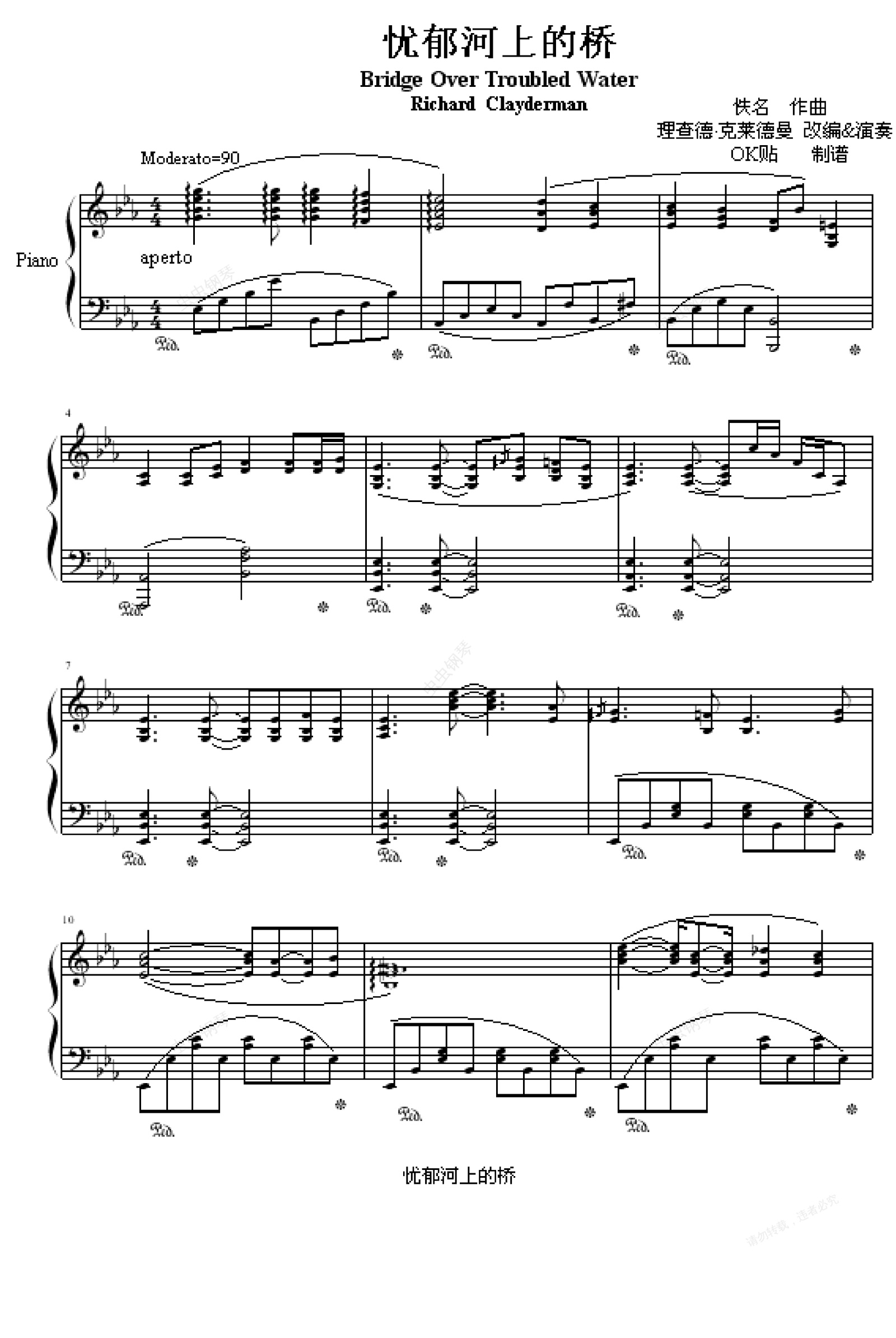 钢琴谱:忧郁河上的桥
