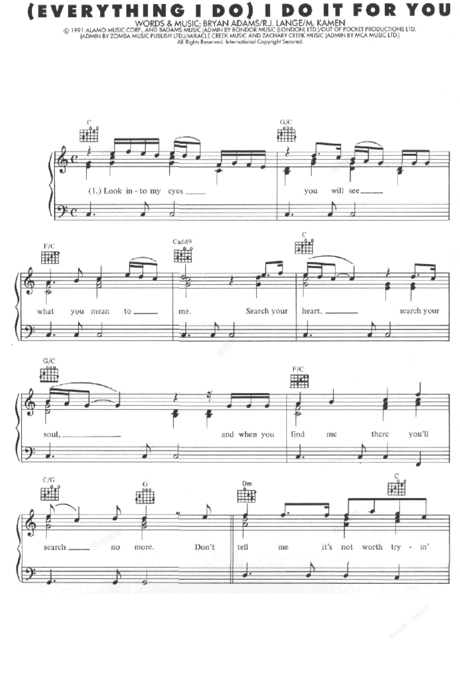 钢琴谱:(Everything I Do)DO It For You - 弹唱版
