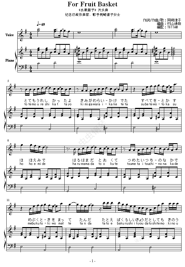 罗马字注音的话乐谱里面有。而且还做了一个没有注音只有假名的版本。pdf文件是歌词。