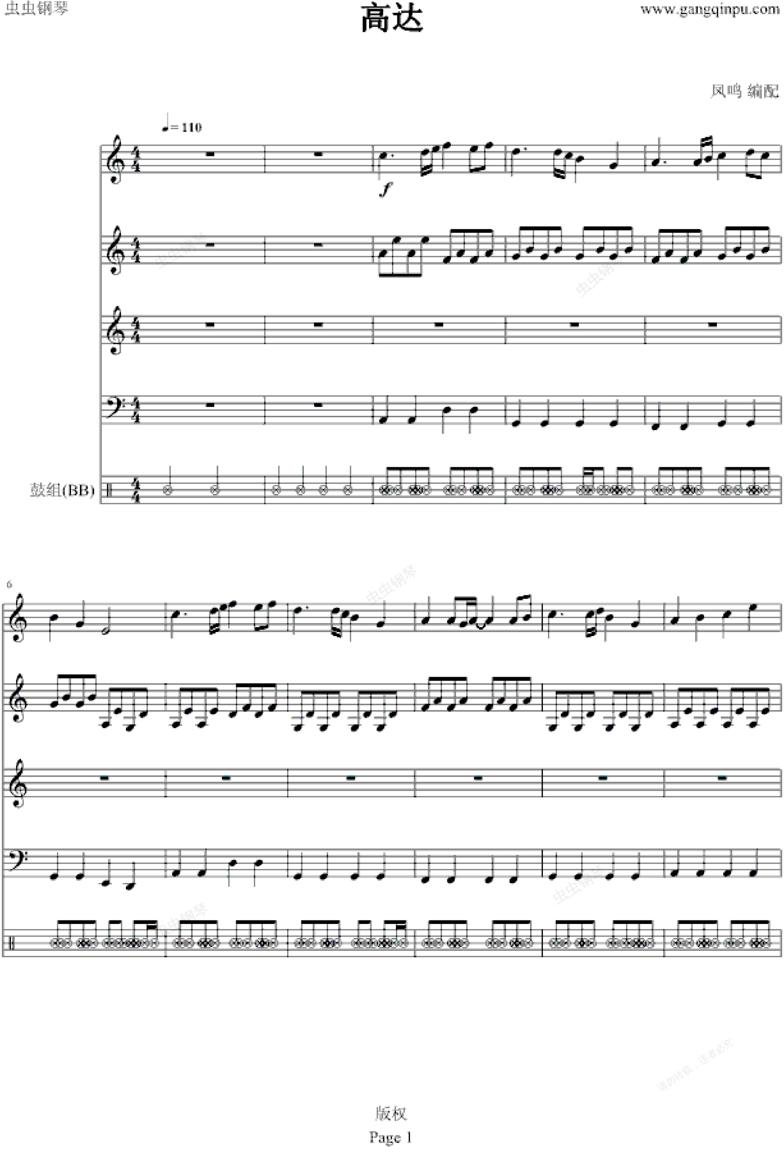 钢琴谱:高达-凤鸣版
