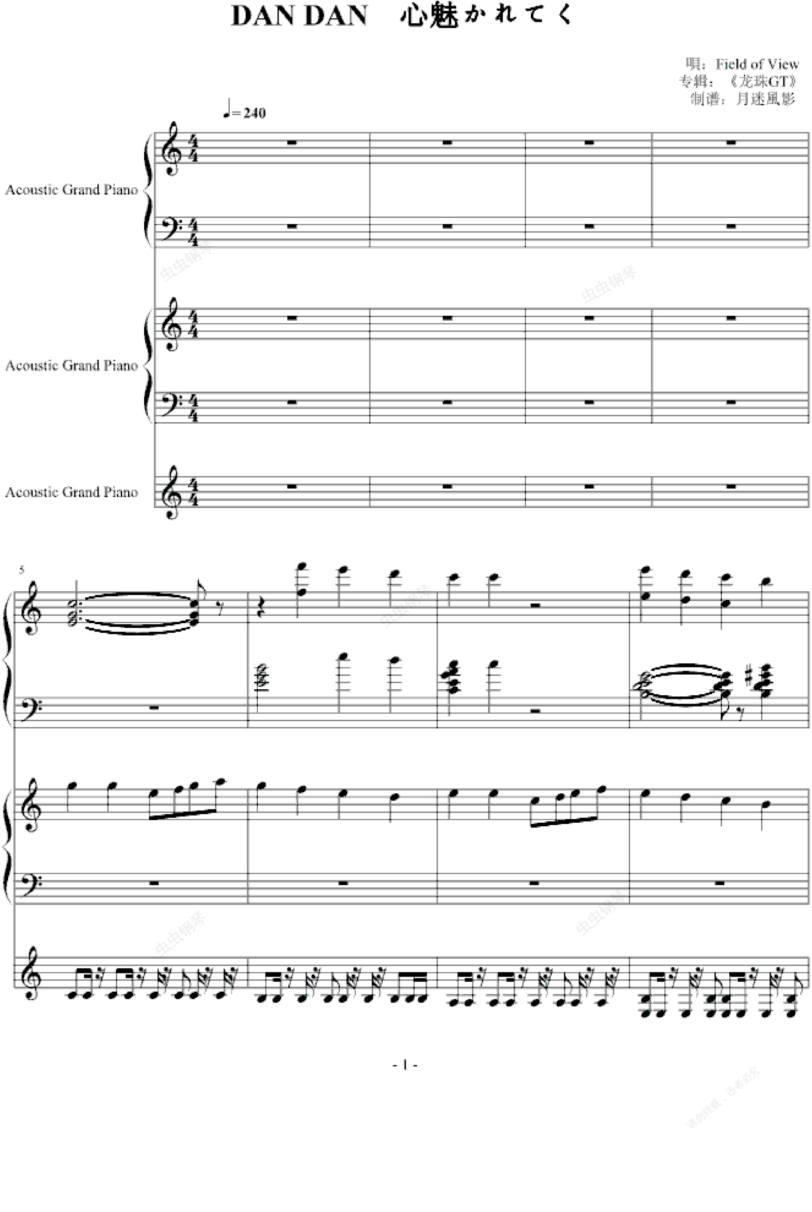 钢琴谱:DAN DAN 心魅かれてく-龙珠