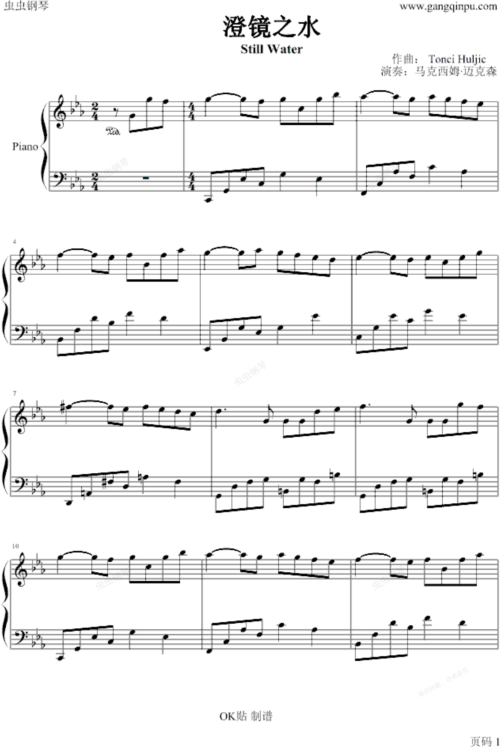 钢琴谱:澄镜之水