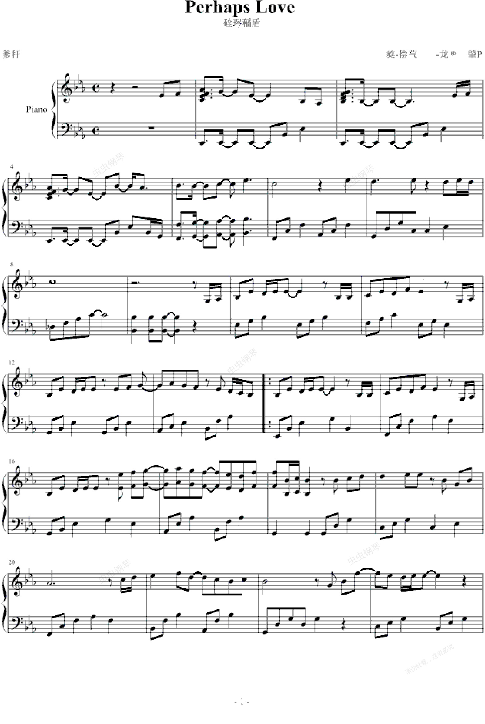 钢琴谱:Perhaps Love -宫-我的野蛮王妃