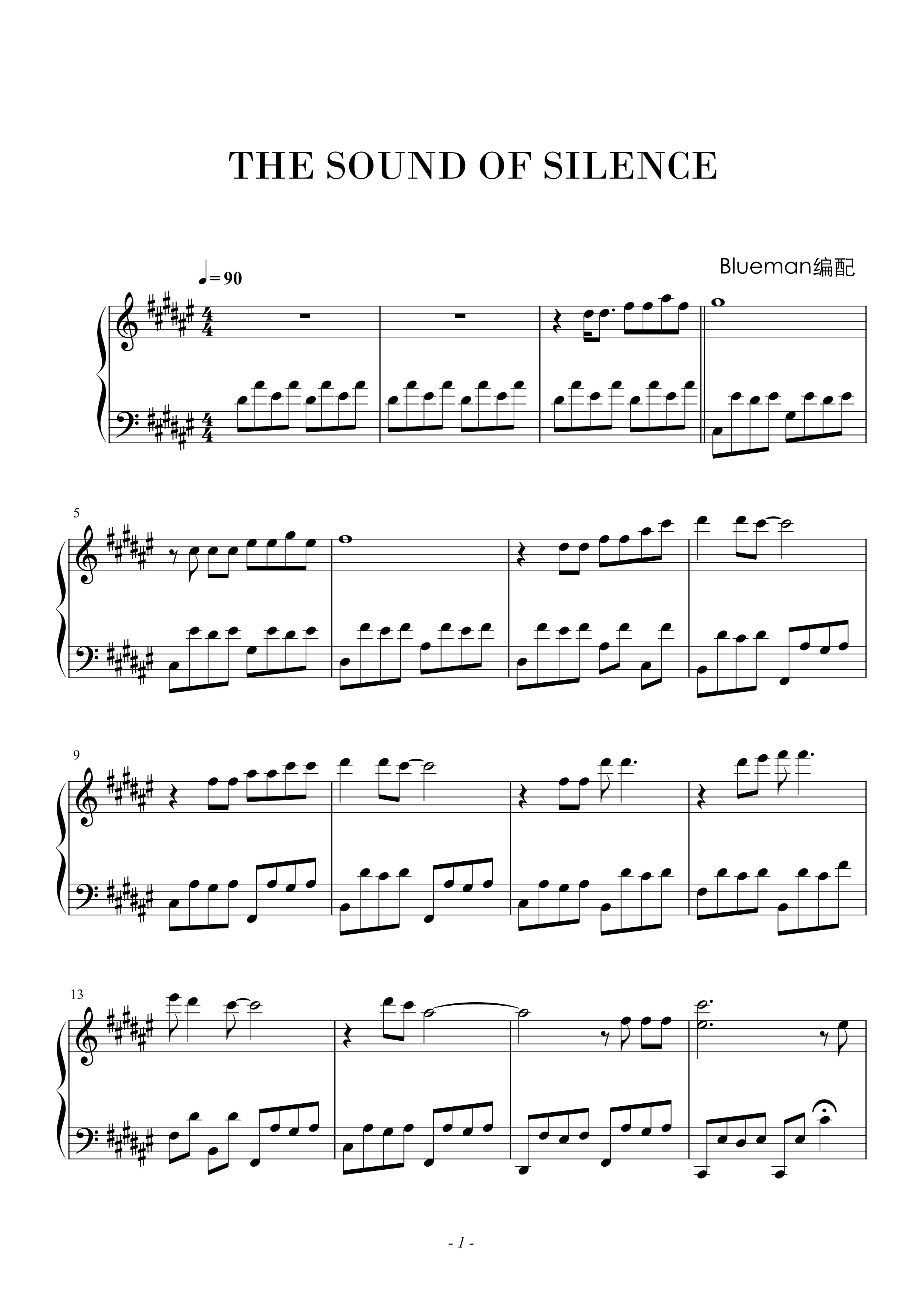 钢琴谱:The Sound of Silence - 寂静之声