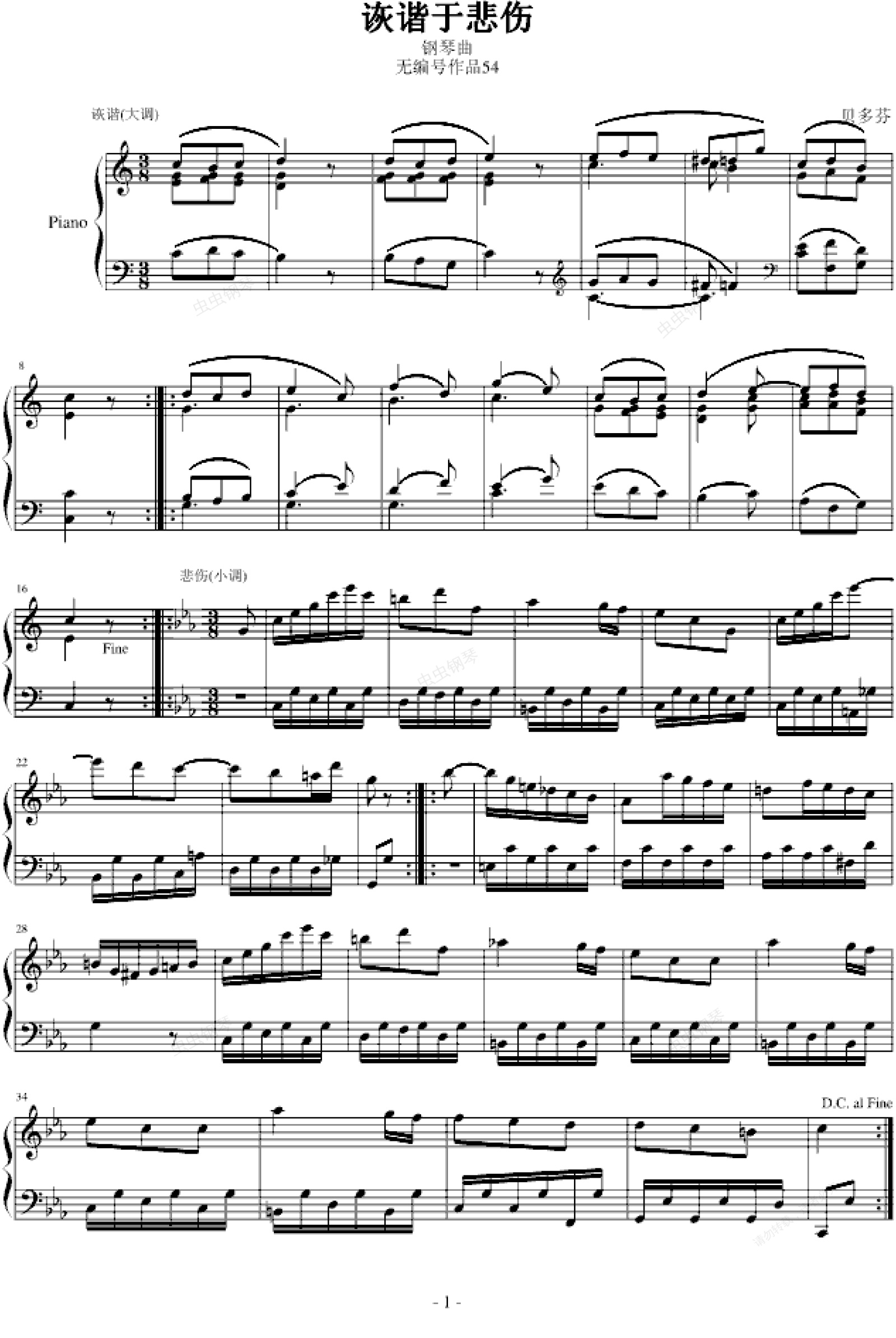这两首被喜爱的相关乐段,一首为C大调(诙谐的),一首为c小调(悲伤的),创作于波恩,1790年