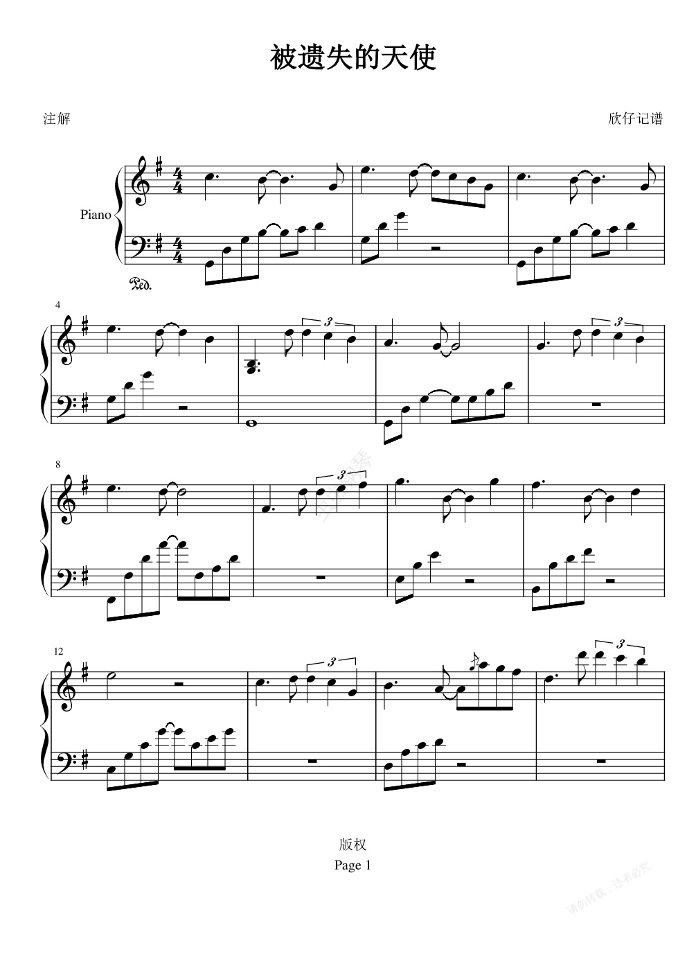 钢琴谱:被遗失的天使 -新鲜人