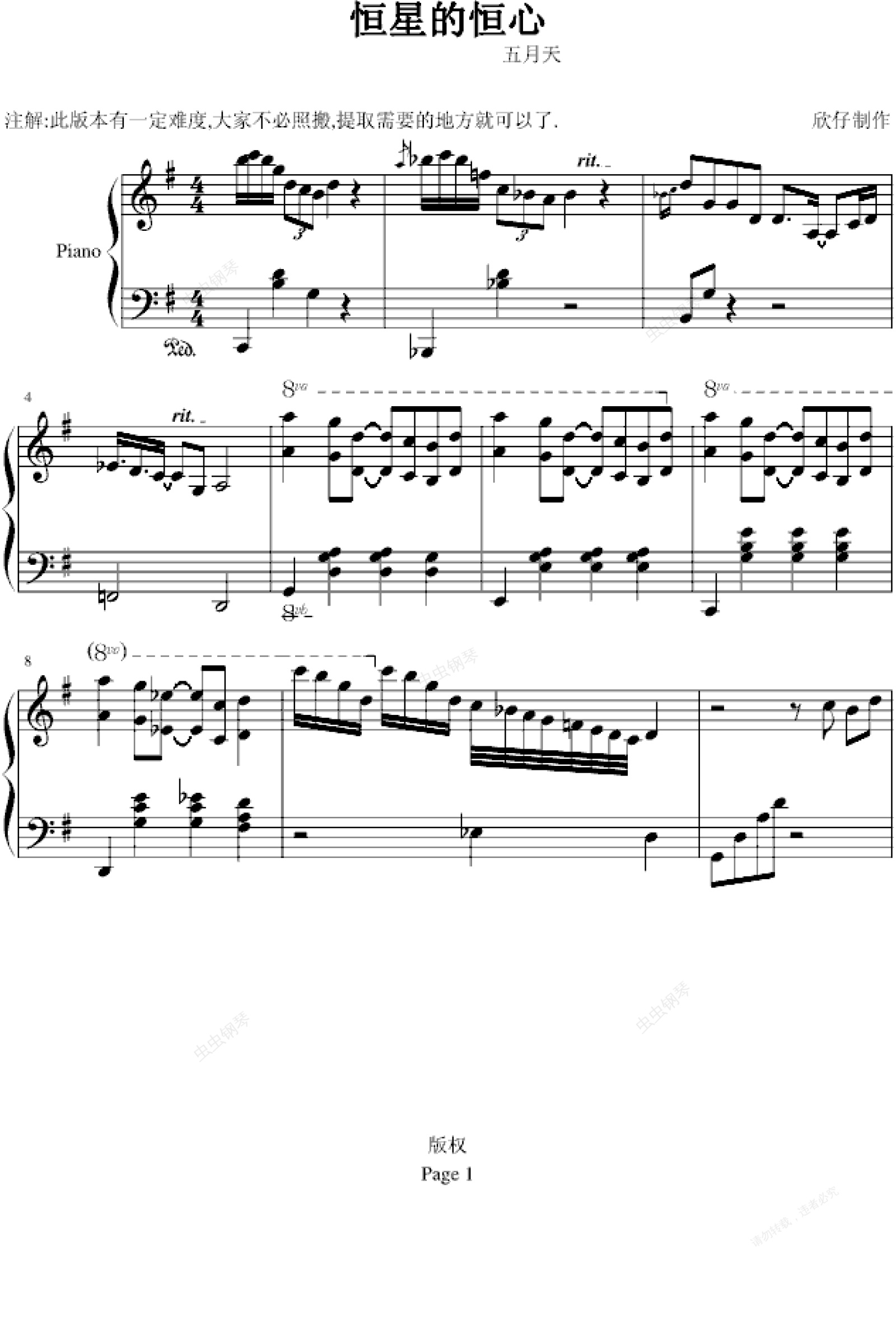 钢琴谱:恒星的恒心-弹唱-b欣仔b版