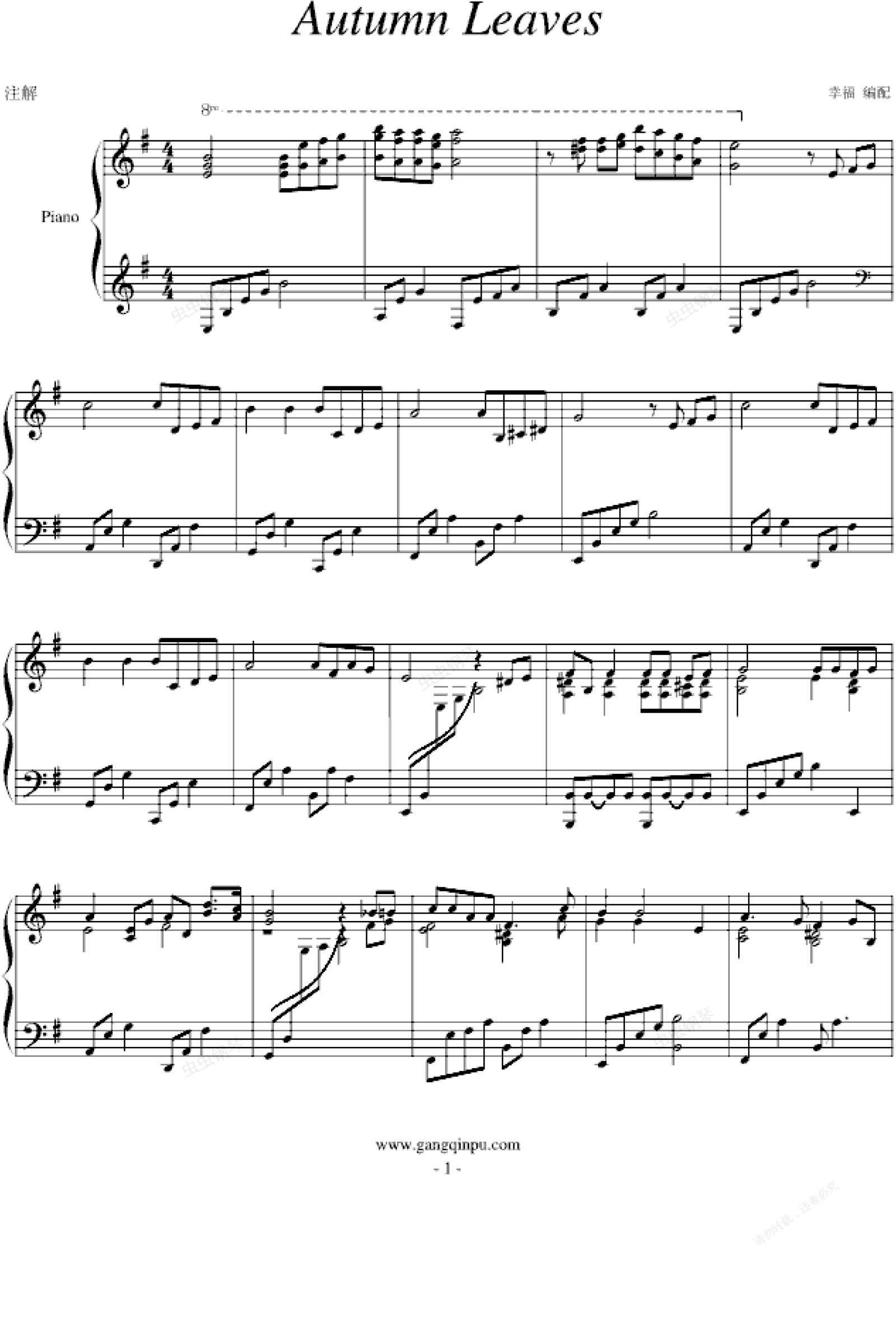 钢琴谱:Autumn Leaves-(钢琴风格)