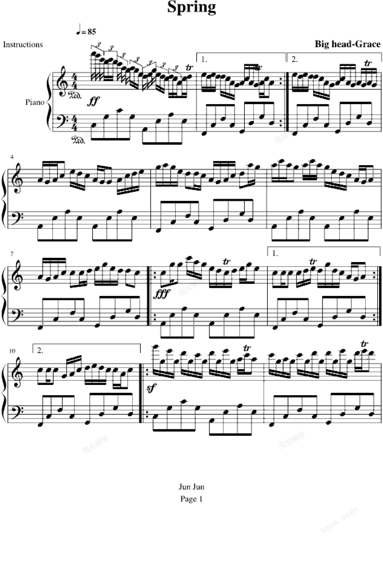 钢琴谱:春季之乐曲