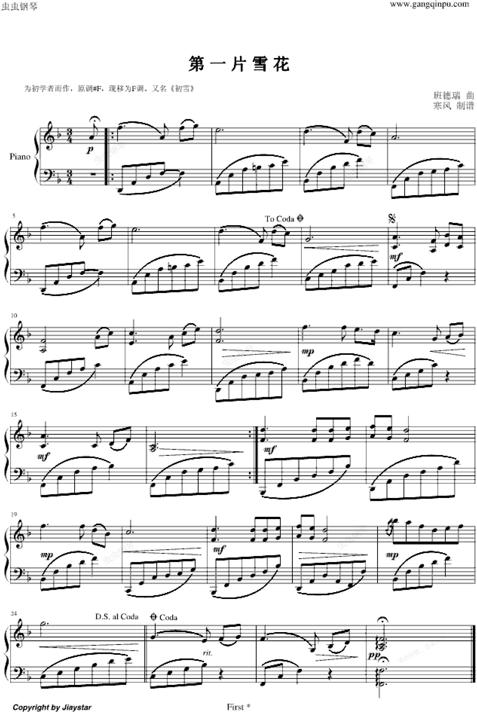 钢琴谱:第一片雪花-简易版