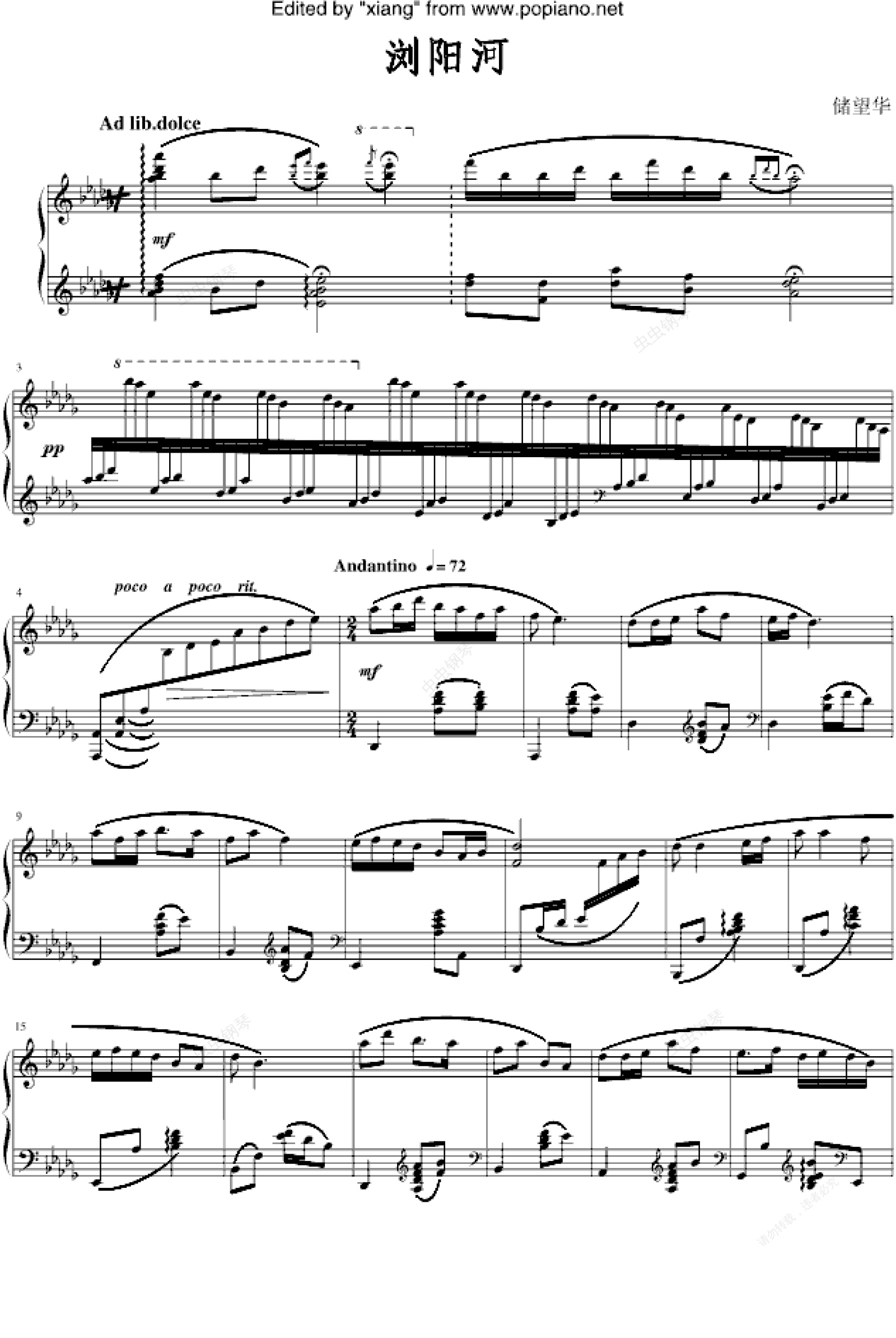 钢琴谱:浏阳河-储望华改编