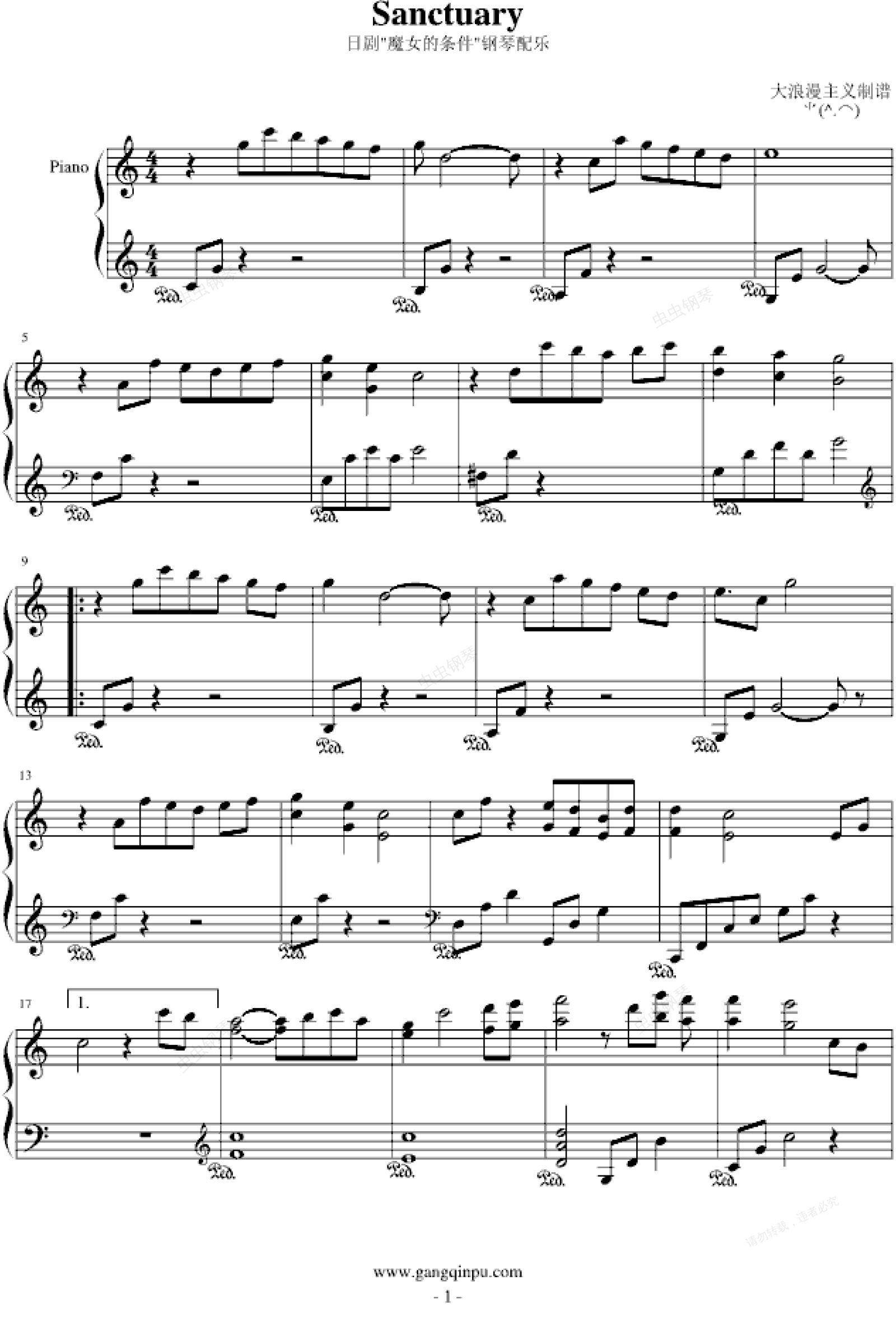 钢琴谱:Sanctuary-魔女的条件