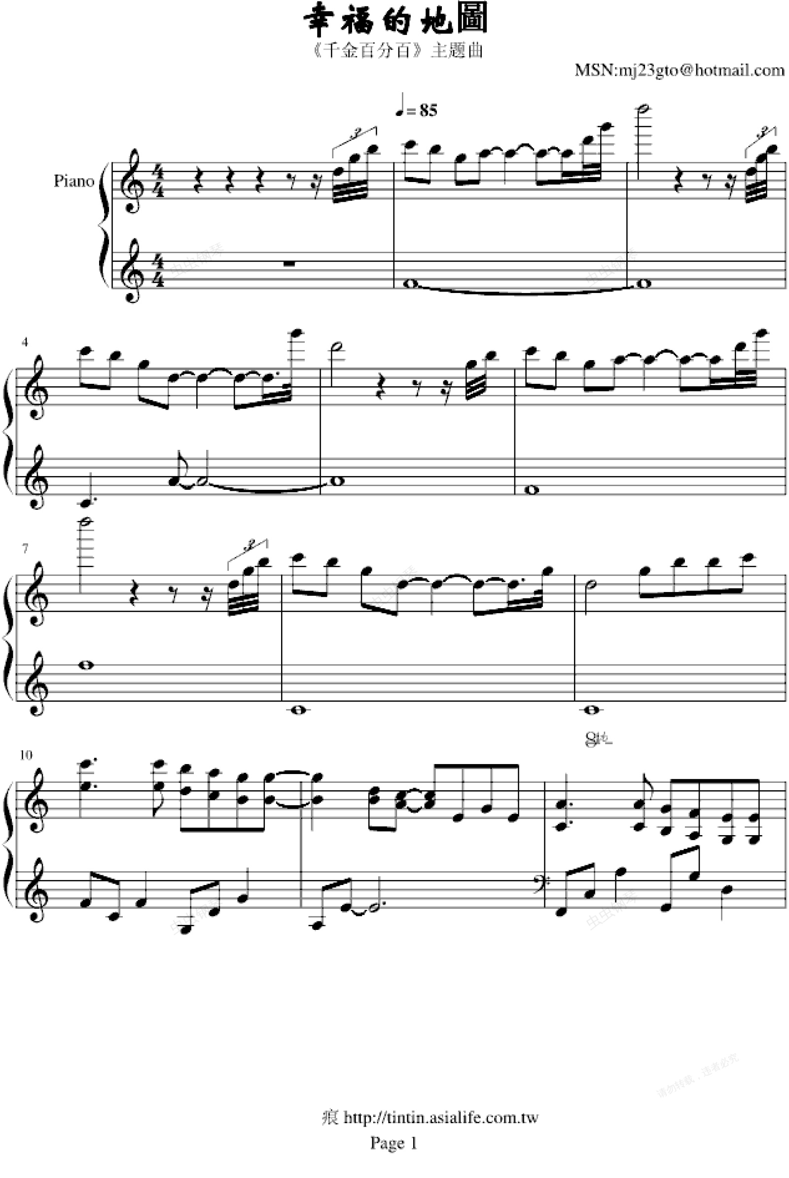 钢琴谱:幸福的地图-《千金百分百》主题曲