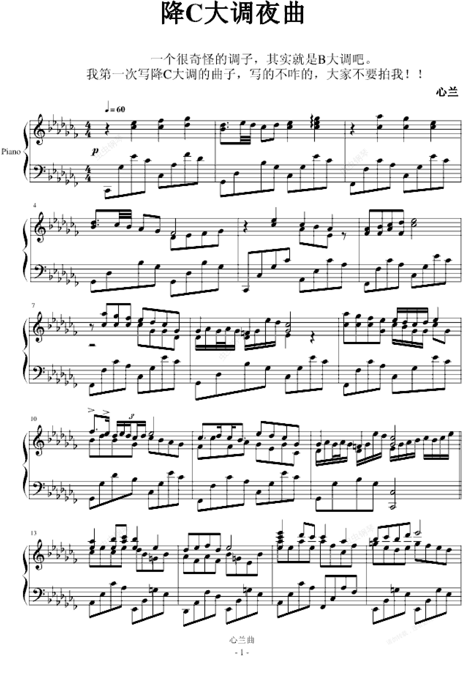 您的位置: 首页 > 钢琴谱库 > 降C大调夜曲