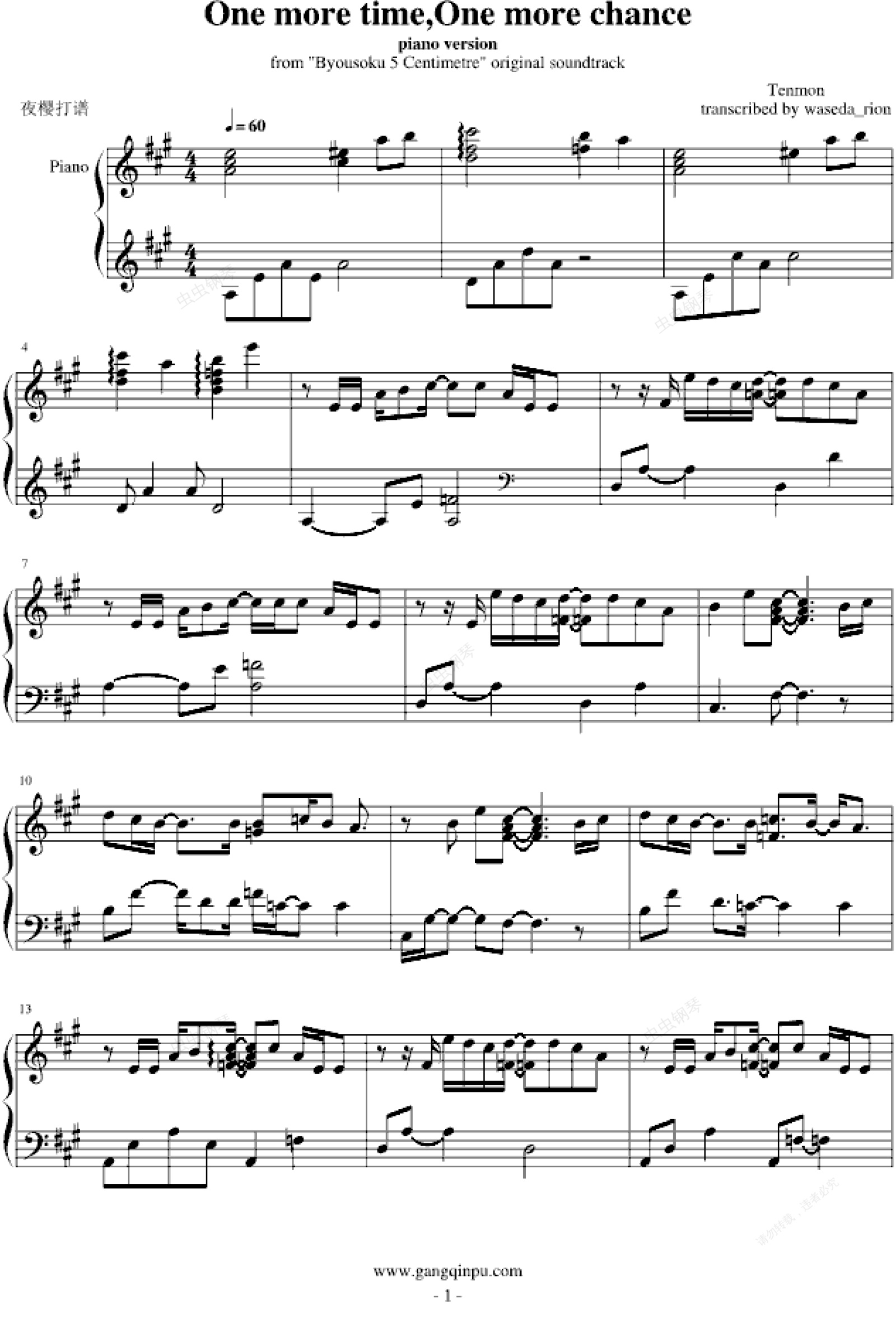 您的位置: 首页 > 钢琴谱库 > One more time, One more chance PIANO ver.