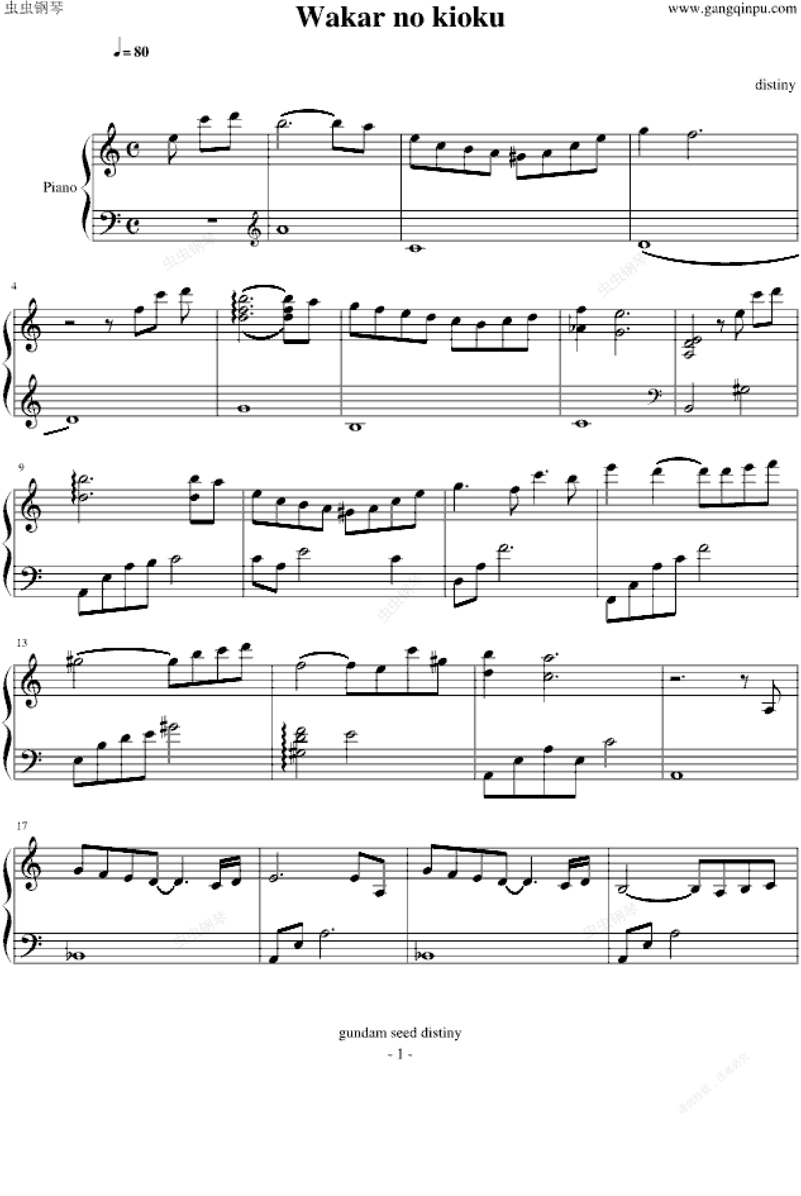 钢琴谱:Wakar no kioku