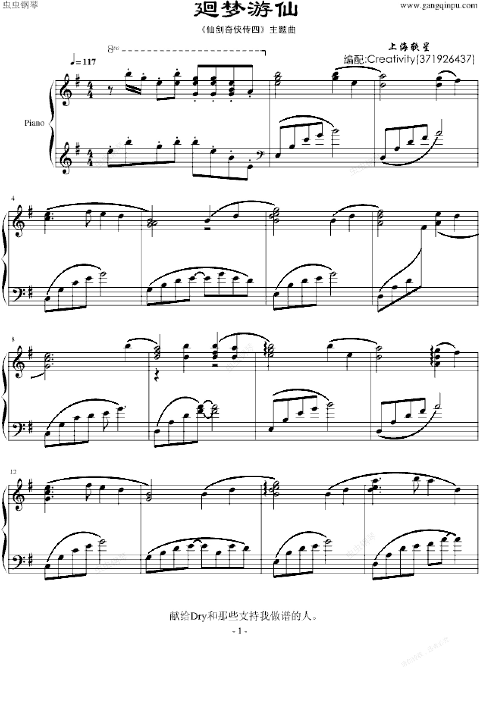 钢琴谱:廻梦游仙——《仙剑奇侠传四》主题曲