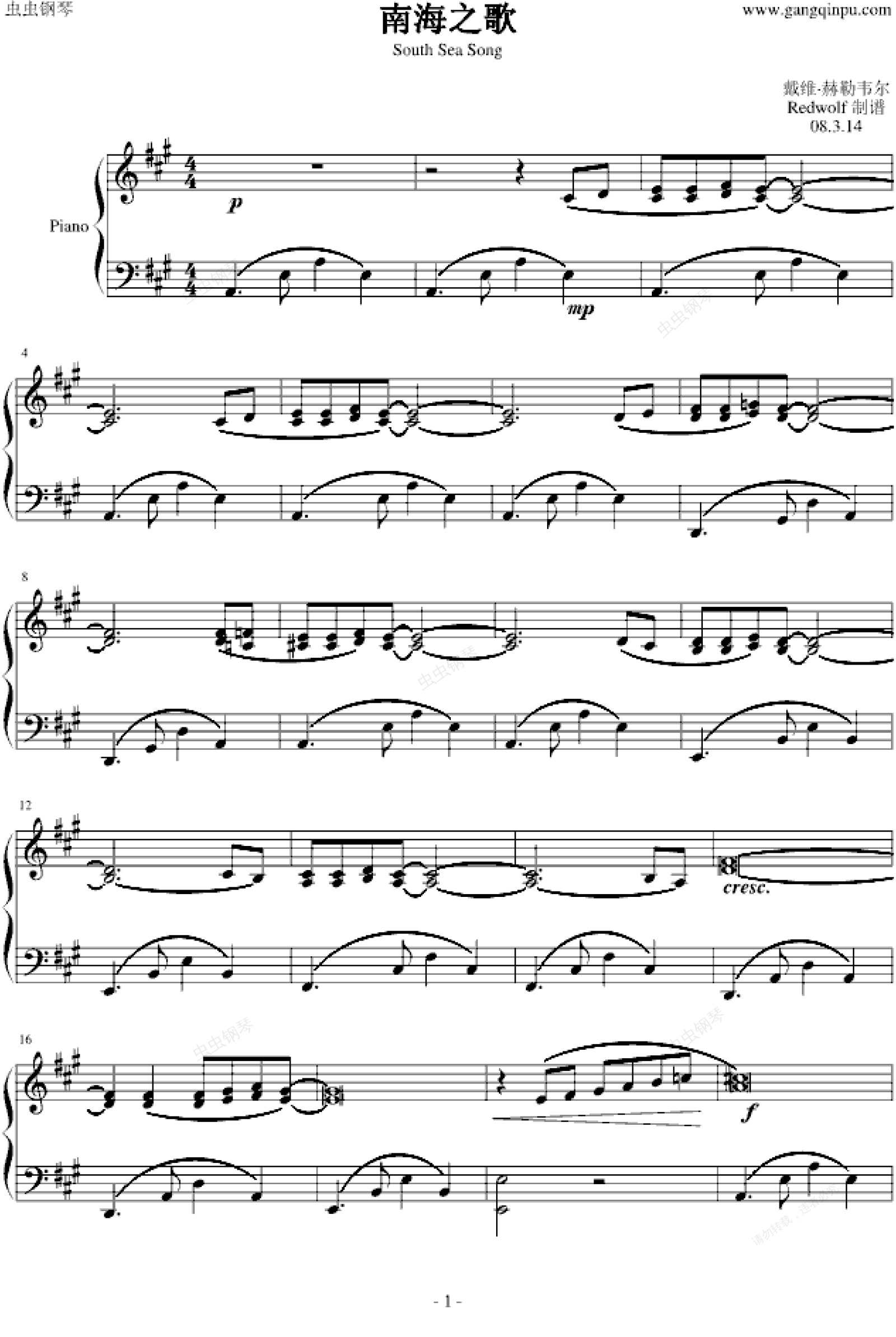 钢琴谱:南海之歌