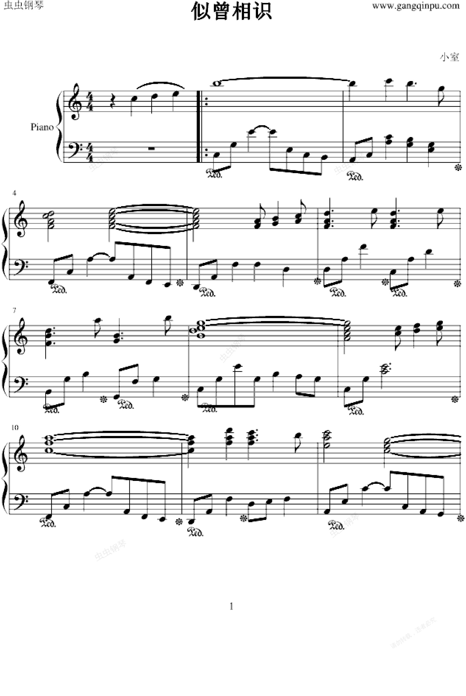 钢琴谱:似曾相识