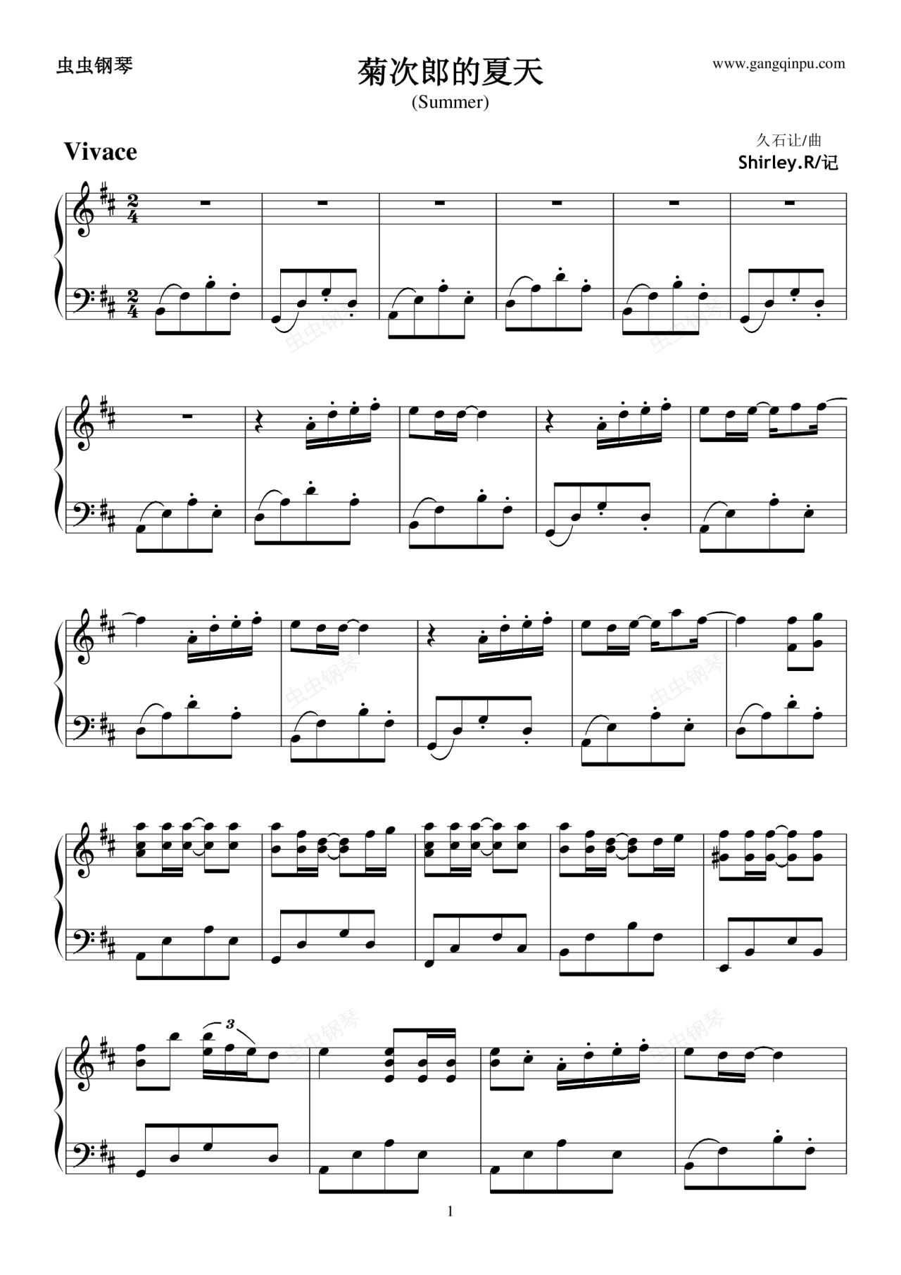 钢琴谱:Summer(菊次郎的夏天)---清新夏日版