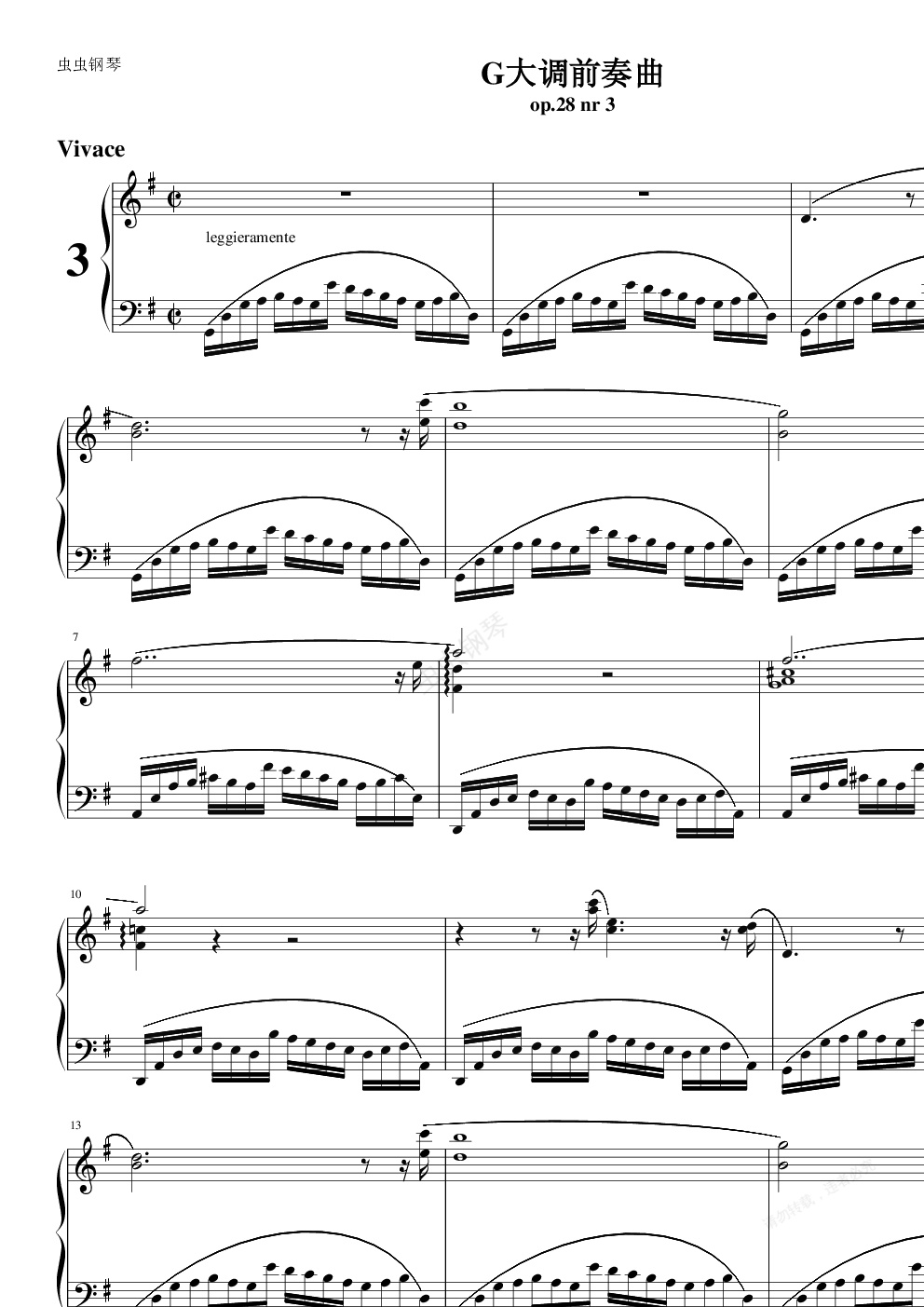 钢琴谱:G大调前奏曲