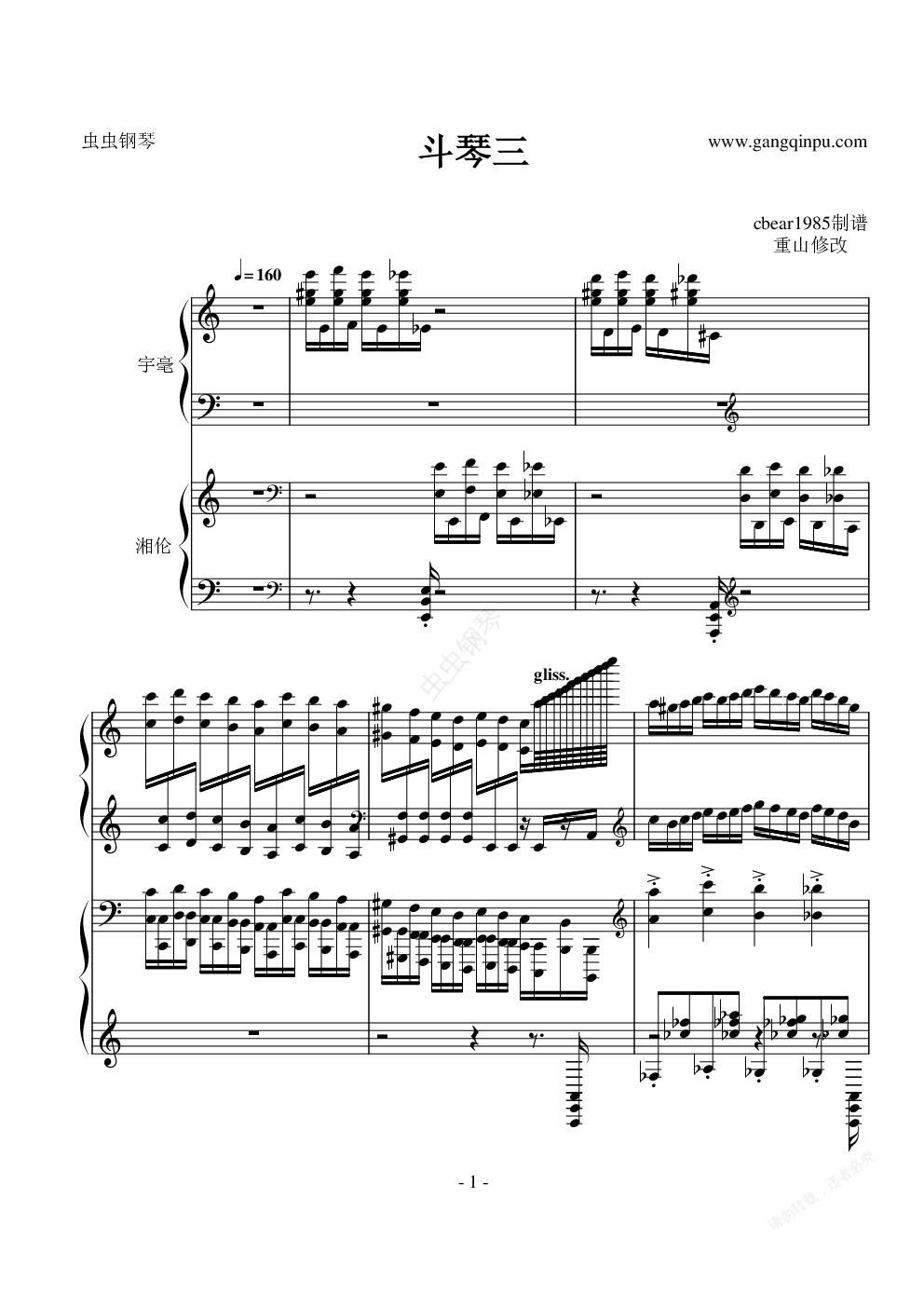 钢琴谱:斗琴三双人准原谱