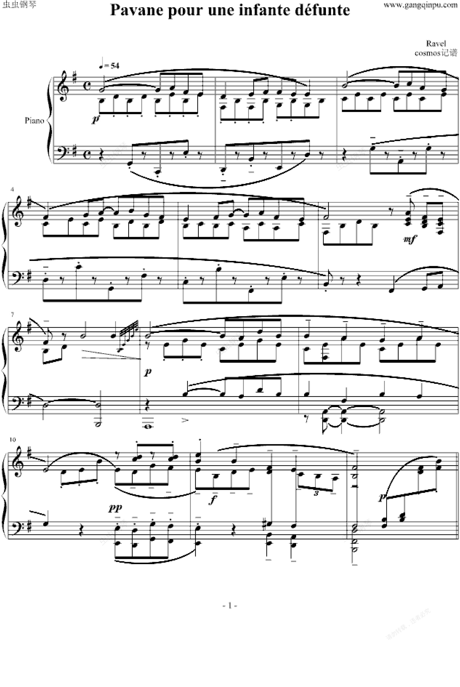 钢琴谱:为死去公主而写的帕凡舞曲-拉威尔