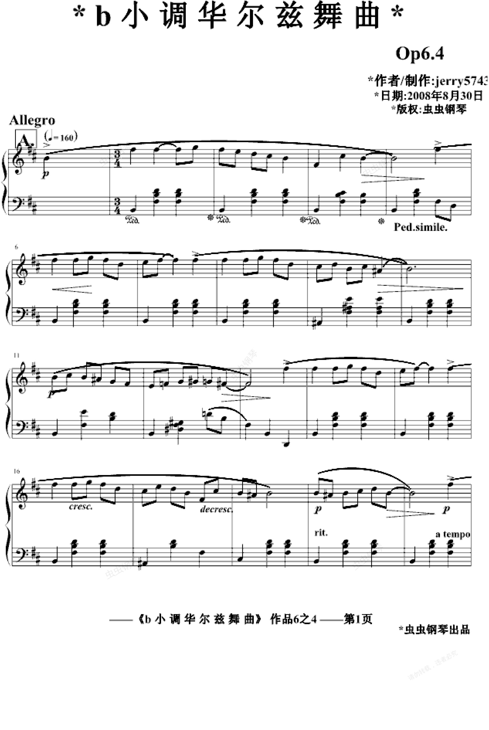 钢琴谱:b 小调华尔兹舞曲Op6.4