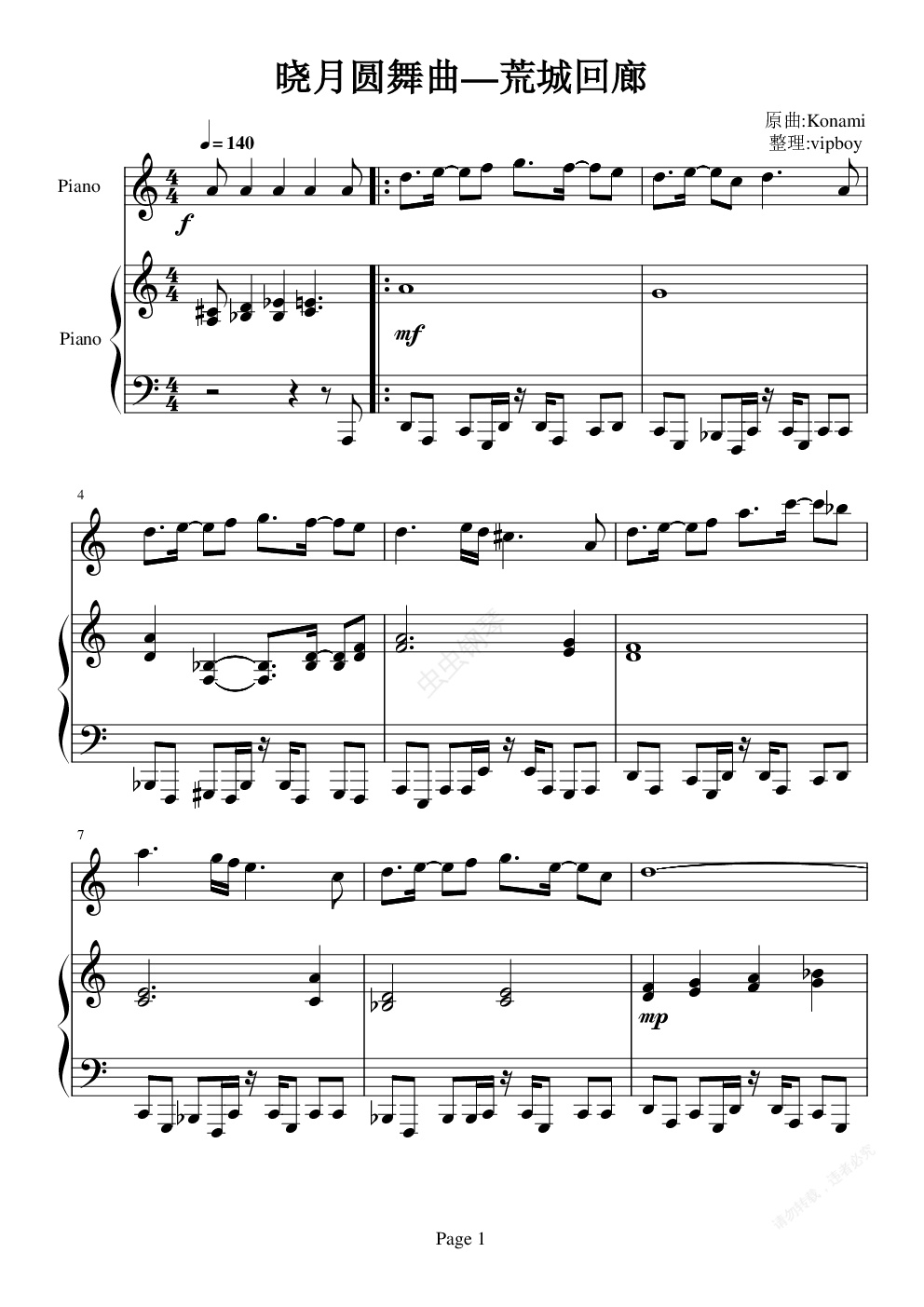 钢琴谱:恶魔城晓月圆舞曲-荒城回廊