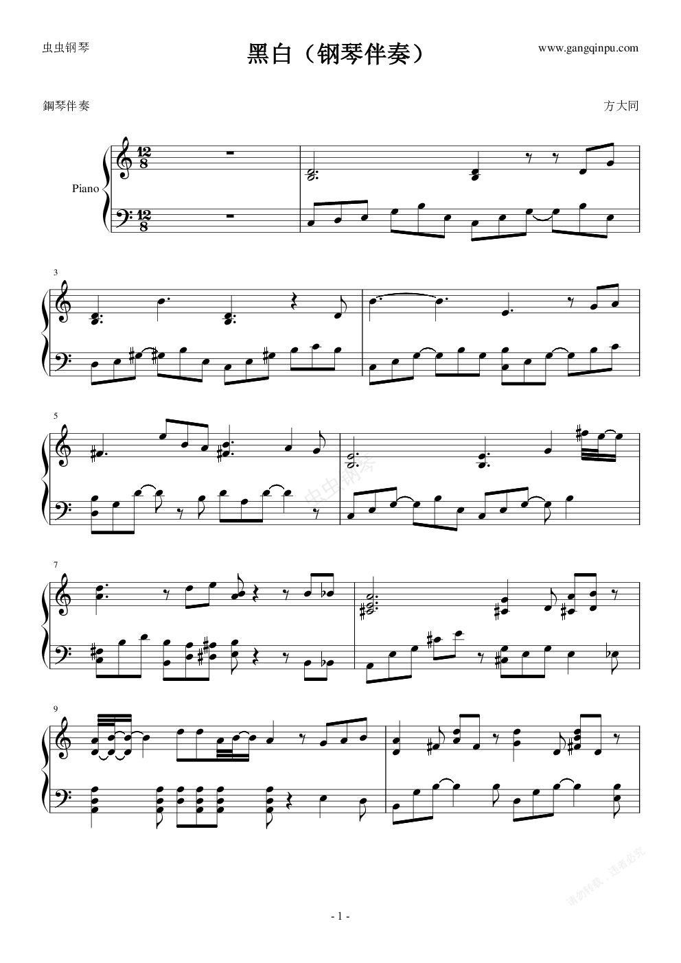 钢琴谱:方大同——黑白(钢琴伴奏)
