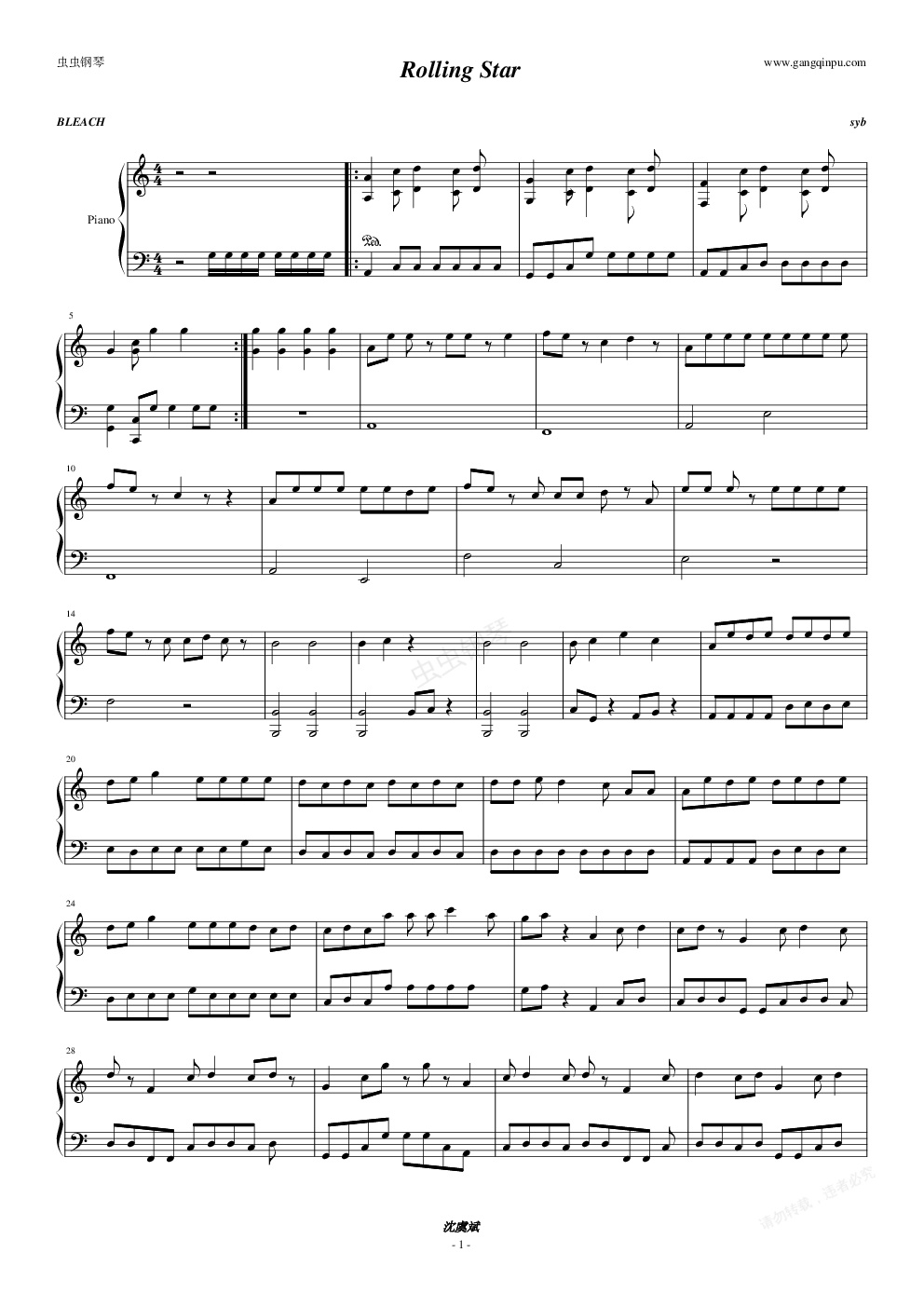 钢琴谱:死神 rolling star