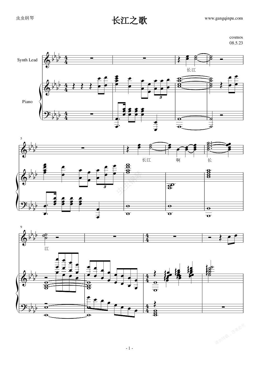 钢琴谱:长江之歌