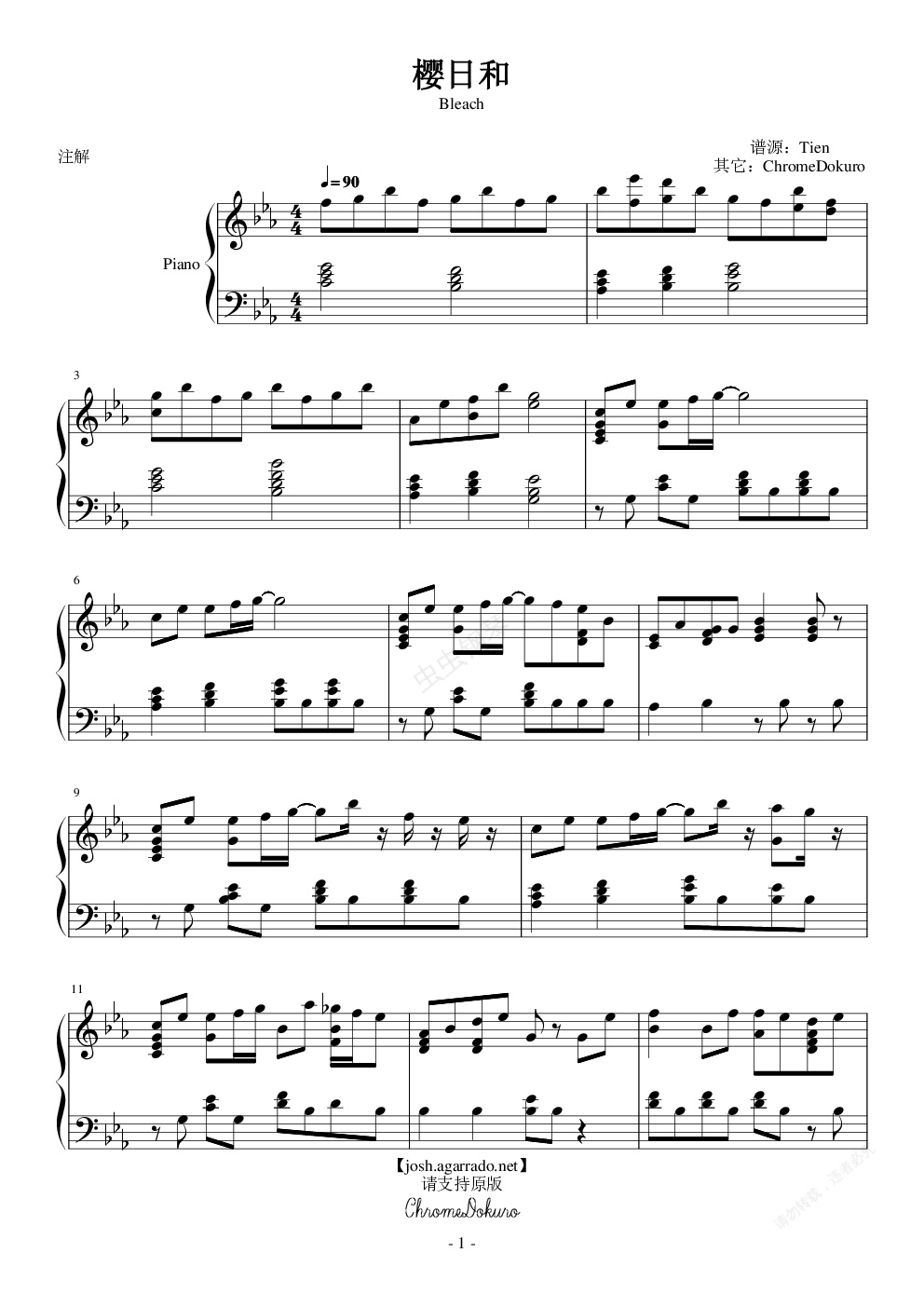钢琴谱:樱日和