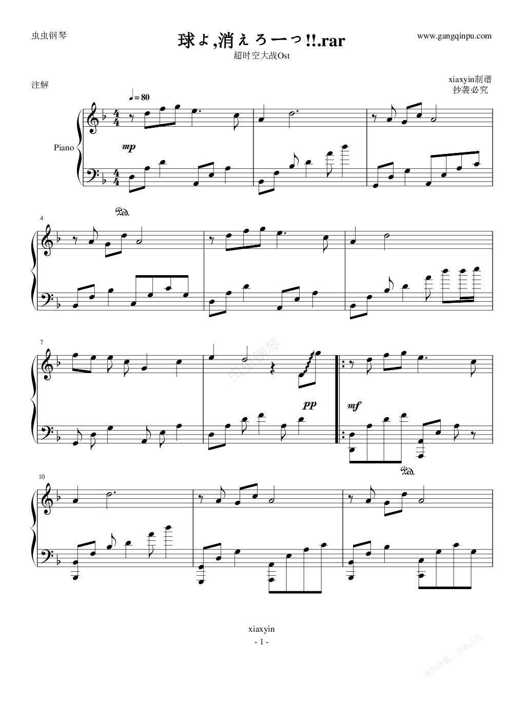 钢琴谱:奥特曼 - 超时空大战 - 球よ,消えろーっ!