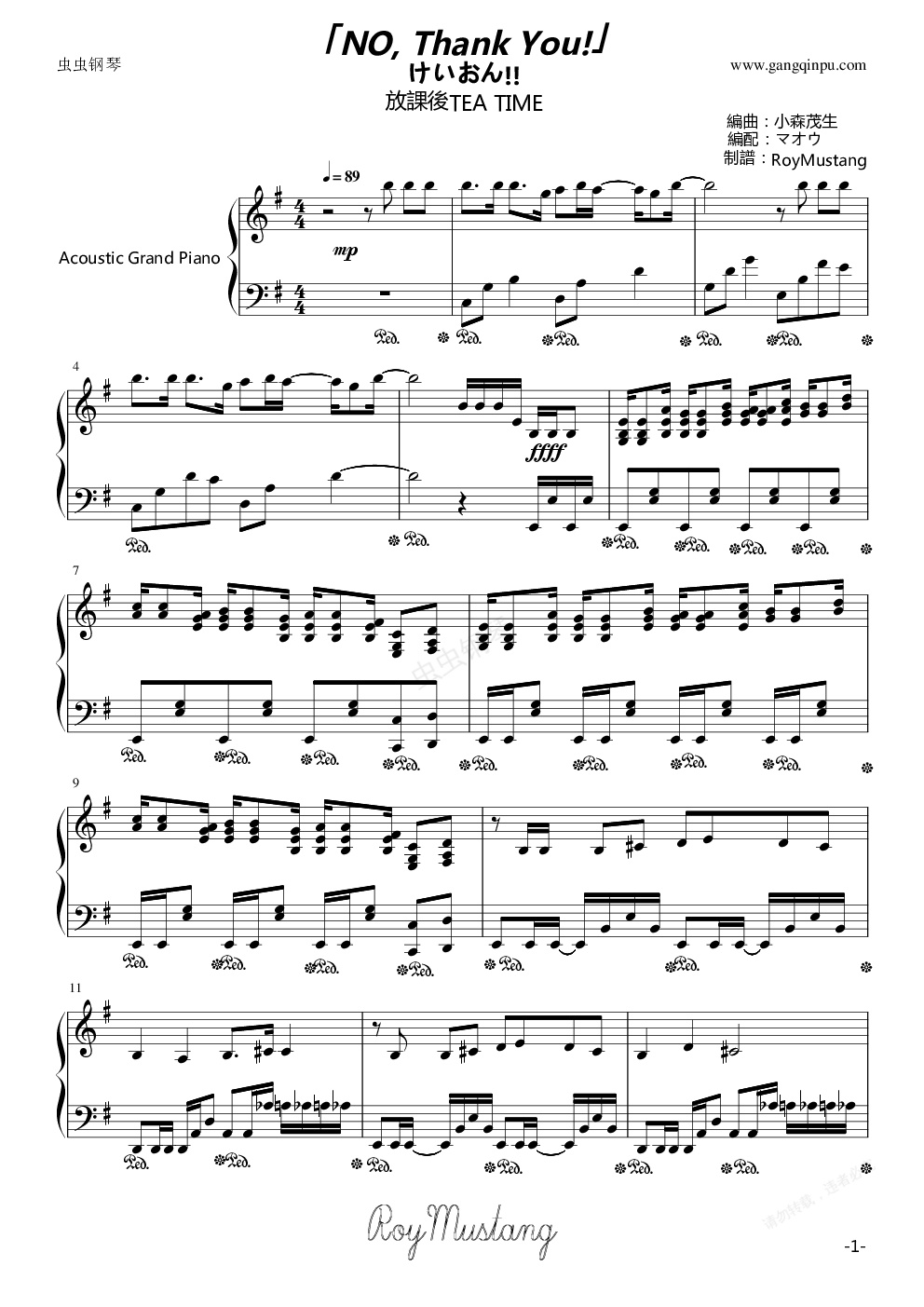钢琴谱:「NO, Thank You!」KON!!
