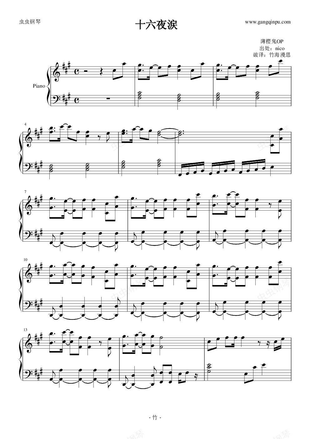 钢琴谱:「薄樱鬼OP」十六夜涙